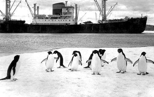 Description: The diesel-electric powered Russian icebreaking freighter Ob at Berth No.12, Port Adelaide early 1958, during the International Geophysical Year. She had been to the Antarctic and was returning home to Russia, taking the opportunity to load bagged grain and wool.