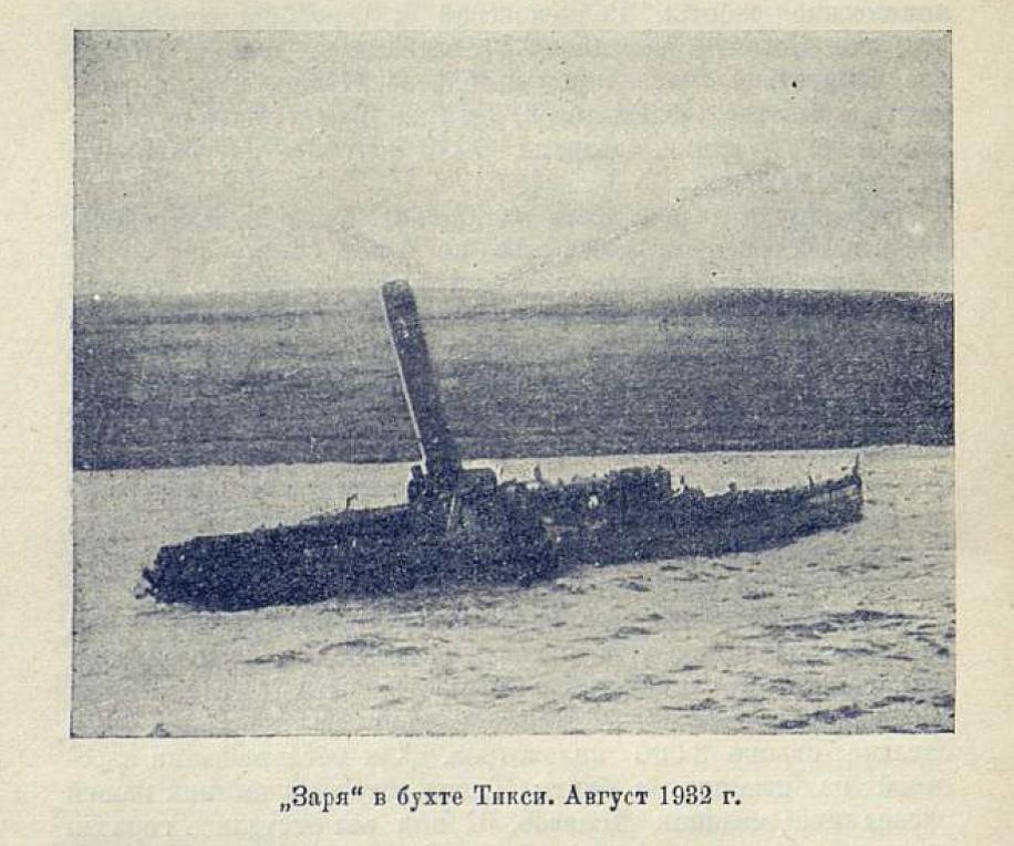 В бухте Тикси мы еще посетили выброшенную на мель „Зарю" или, вернее, жалкие остатки этого некогда прекрасного полярного судна, принадлежавшего так называемой Русской полярной экспедиции", под начальством Э. Толя.