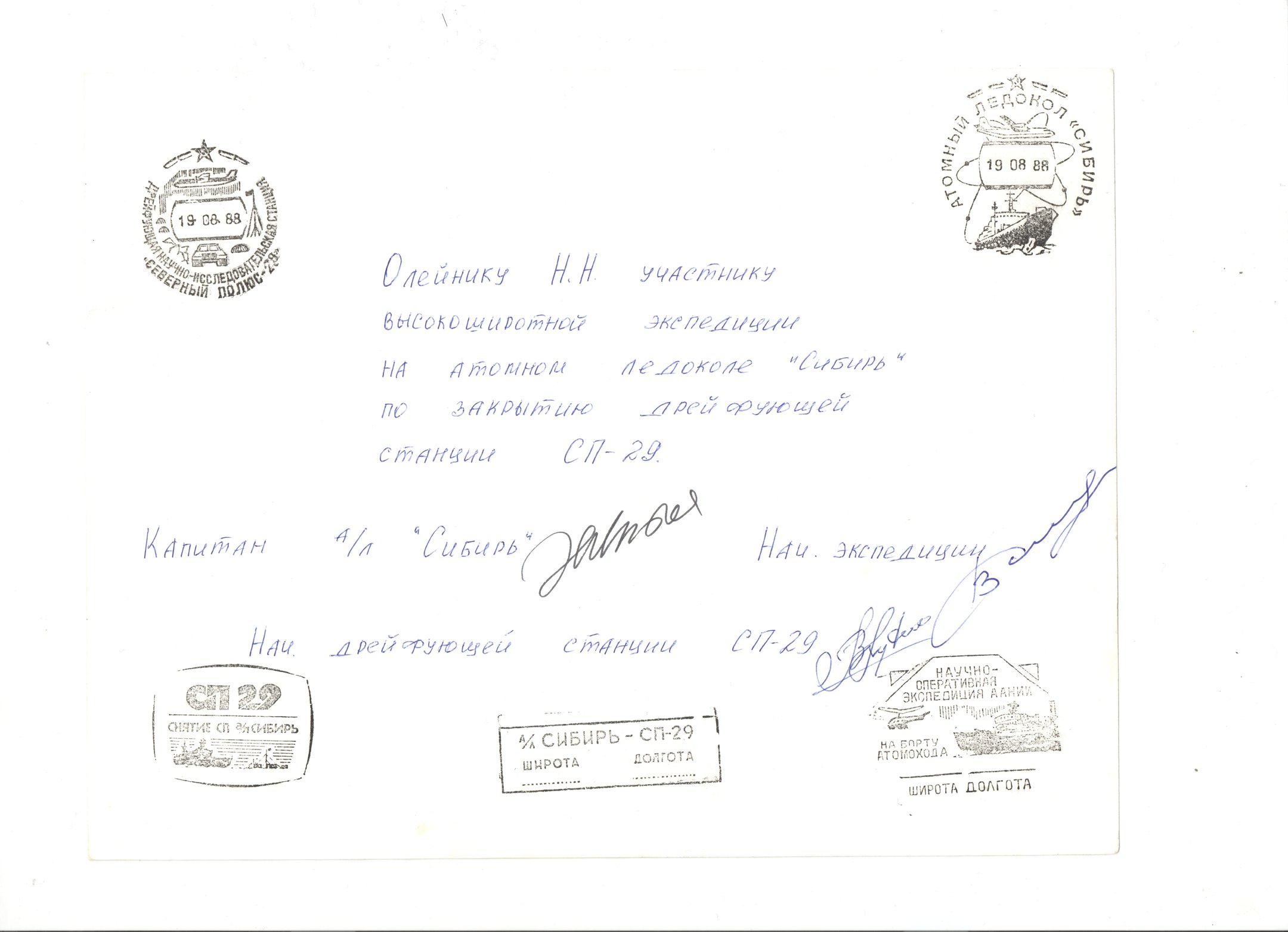 Из архива В.А. Комаровского (ААНИИ). С автографами членов экспедиции ААНИИ и комсостава а/л "Сибирь":