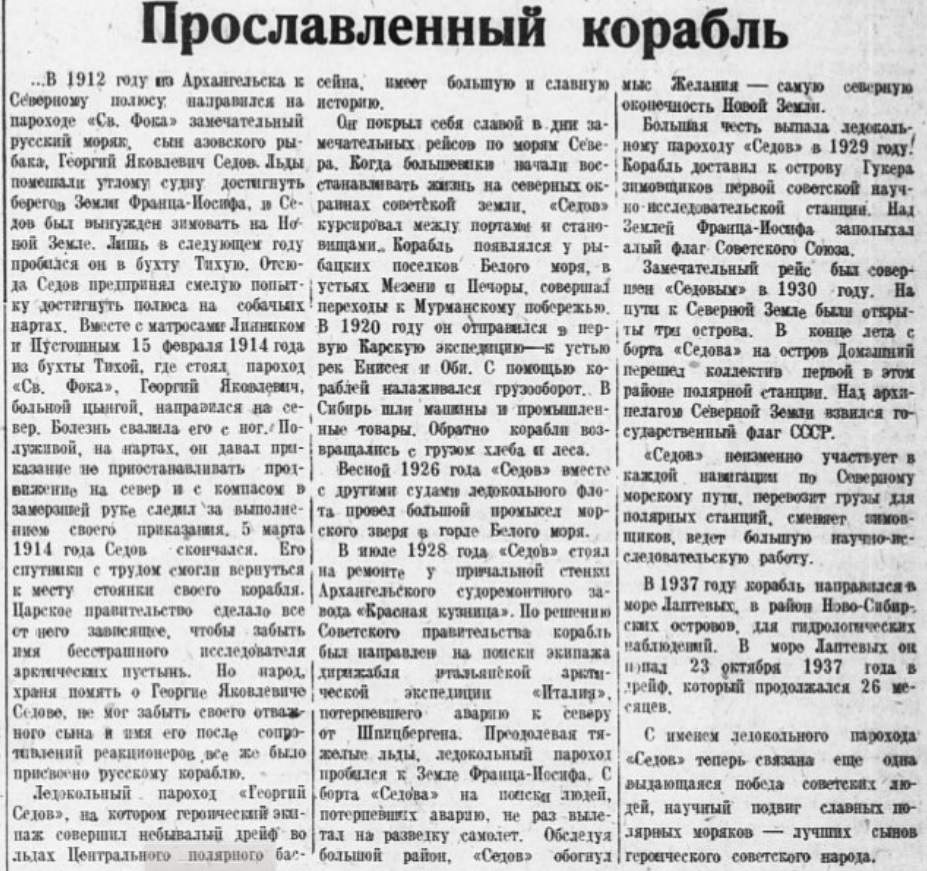ПЕРВЫЙ РЕЙС „САДКО"//Пионерская правда 1934 18 июля №091(1390)
