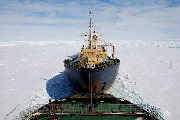 — В районе одного из ледников Эйра мы встретили большое скопление айсбергов. Пришлось даже стопорить машину. Наконец появилось яркое солнце, туман рассеялся. Стали выгружать на лед самолеты, тягачи, тракторы, сани. А на следующий день поднялся ветер с берега, лед двинулся, появились трещины. Пришлось все принимать обратно на судно.