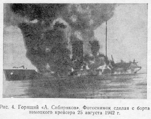 После очередного попадания тяжело ранило капитана. Командование принял комиссар З. А. Элимелах[5], и далее руководил боем. По его приказу радист А. Г. Шаршавин в передал в эфир радиограмму: «Помполит приказал покинуть судно. Горим, прощайте. 14 ч. 05 мин.» По приказу комиссара старший механик Н. Г. Бочурко открыл кингстон. Комиссар и старший механик погибли вместе с кораблем.