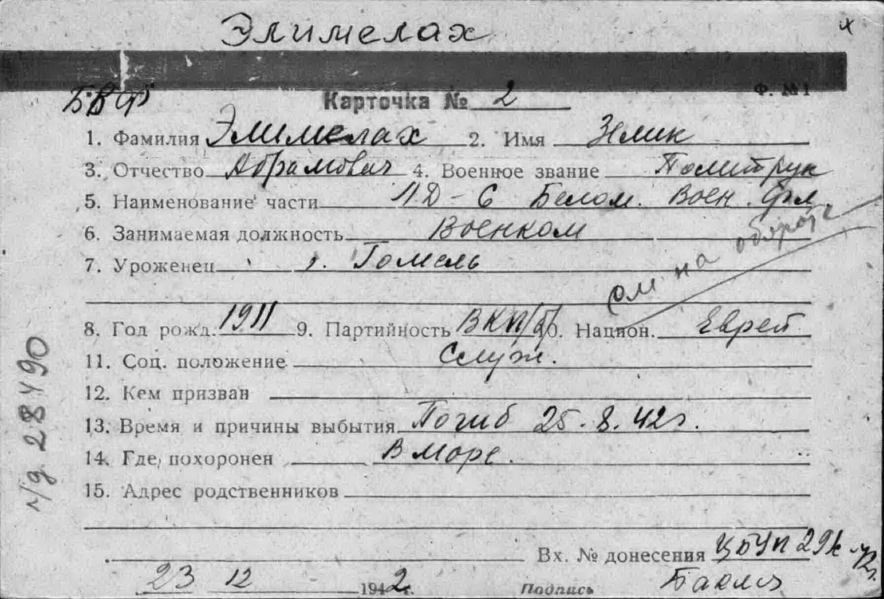 Название источника информации: Картотека безвозвратных потерь