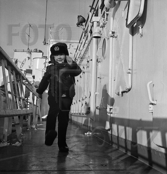 На Балтике начал работать новый ледокол "Киев", который поведет караван судов на юг Балтики. Капитан Голохвастов взял с собой в рейс шестилетнего сына Васю. Февраль 1966 года.