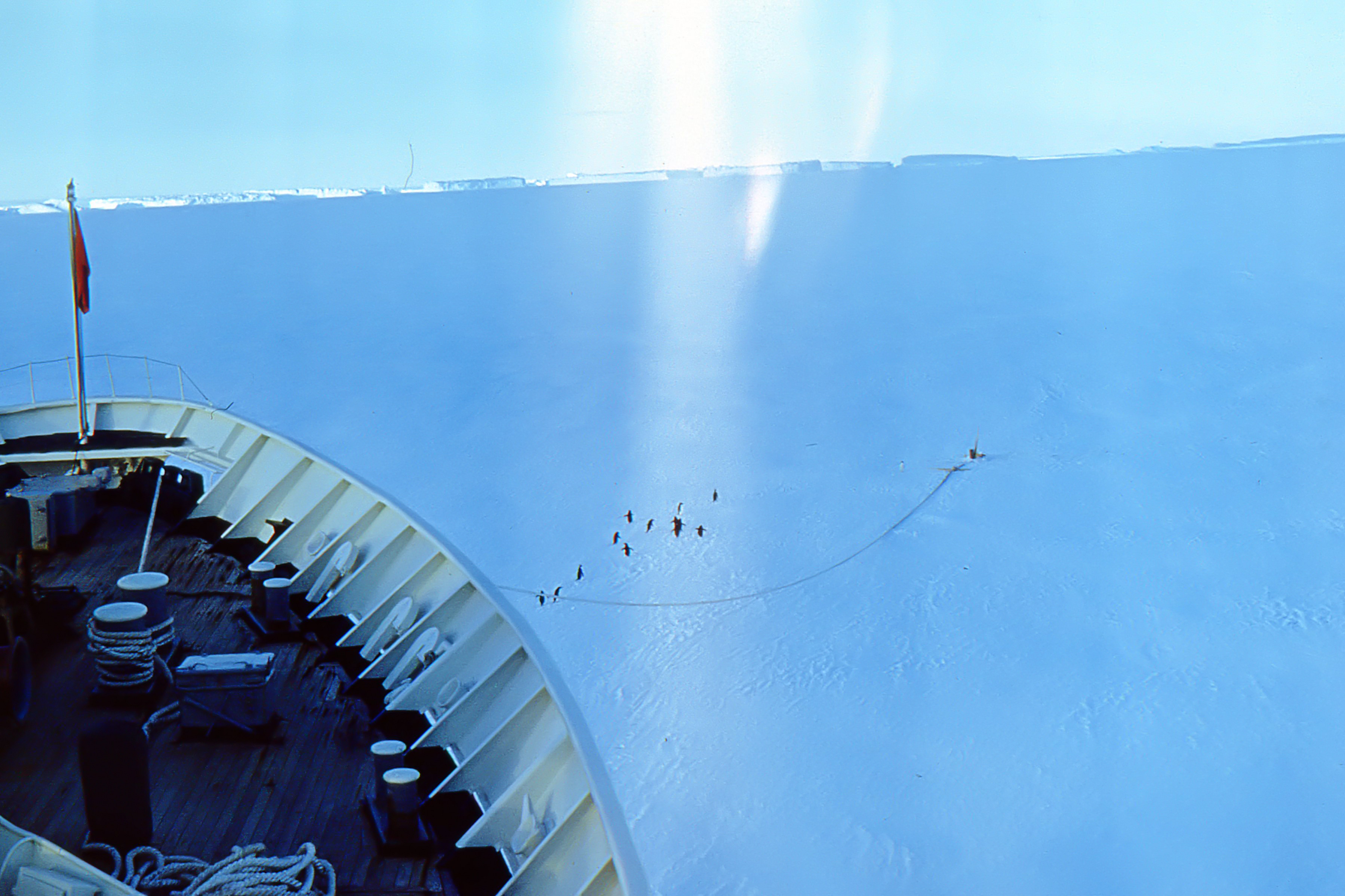 — Николай Иванович! Нашел льдину приличную, можно работать. Два кабельтовых от кромки. Вокруг лед сплоченный, шесть-семь баллов. Но очень сильная зыбь. Пока нужно подождать. Я побоялся входить — льдины буквально подбрасывает.