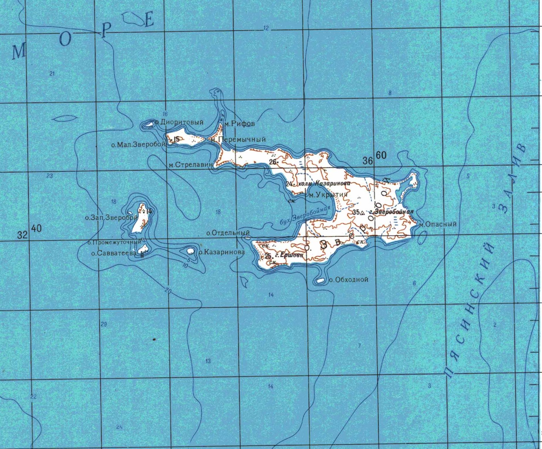 ЗВЕРОБОЙ, о., Карское море, Пясинский зал. Обследован в 1933—34 гг. Назван в честь шх. «Зверобой».