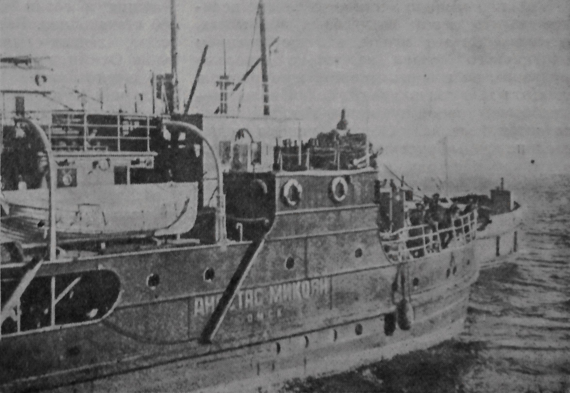 Foto 1929 russischer Schlepper Anastas Mikojan Omsk in der Nesserlander Schleuse