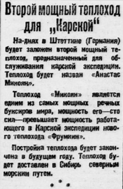 У каждого поколения свои памятные вехи. В тридцатые годы речники Иртыша помогали полярникам осваивать Северный морской путь, начиналось строительство г. Норильска, на Урале – Магнитки. Теплоходы « Анастас Микоян », «Сибкрайком», «Первая пятилетка» завозили в северные широты различные грузы, в том числе уголь для ледоколов, которые работали на Севморпути.