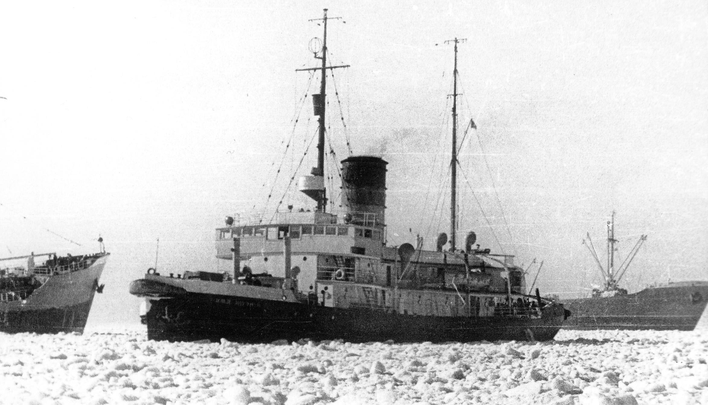 Обкалывание т/х "Батуми". Амурский зал., 23.12.1956