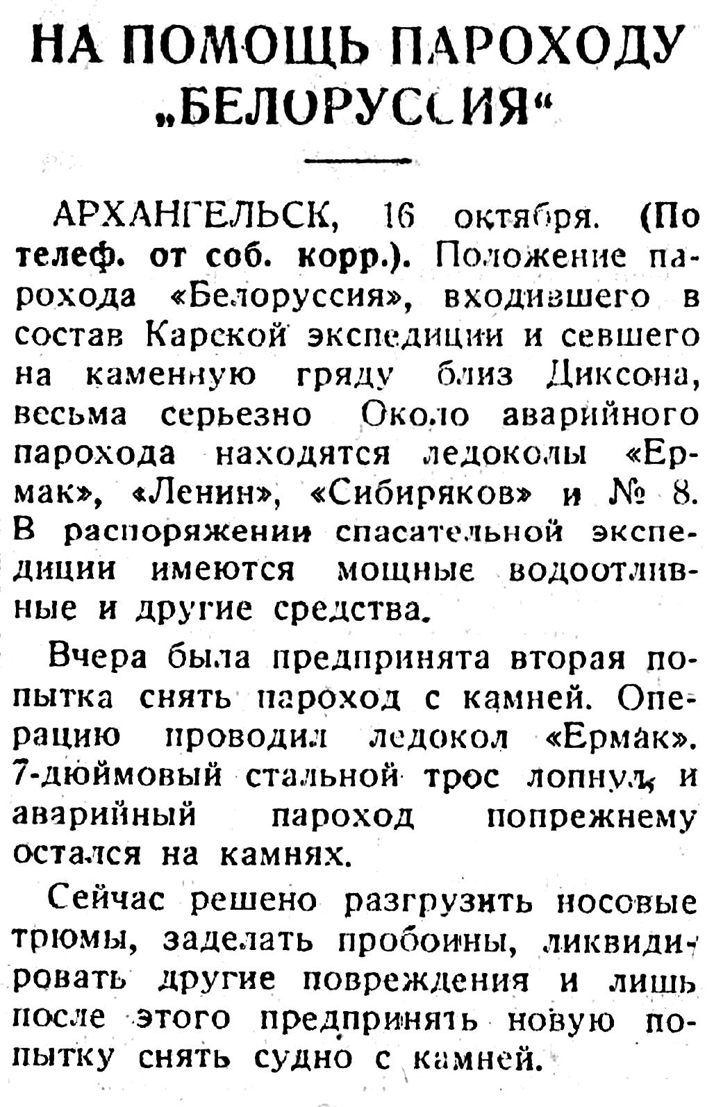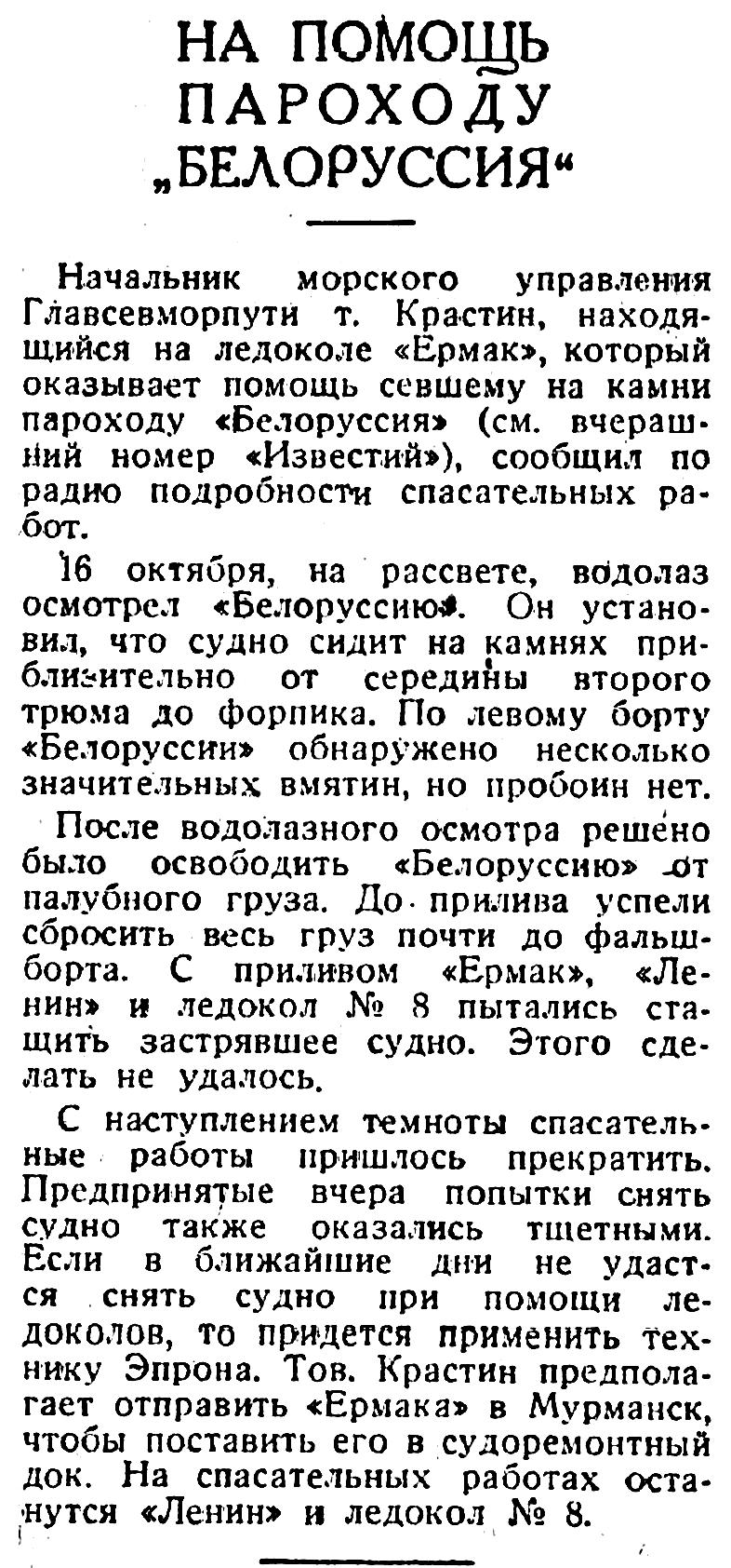 Пароход. Заложен в 1935 г. на судоверфи «Furness Sb Со» в Хавертоне (Великобритания) по заказу СССР, спущен на воду в 01. 1936 г., вступил в строй осенью 1936 г. и вошел в состав СГМП. В 1938 г. переведен на баланс ДГМП. В годы Великой Отечественной войны осуществлял экспортно-импортные перевозки между портами СССР и союзников; летом 1942 г. по Севморпути совершил переход с экспортным грузом из Сан-Франциско (СШ А) в Архангельск, в период с 30. 12. 1942 г. по 06. 05. 1943 г. в составе союзного конвоя «RA-51» перешел из Мурманска через Панамский канал в Сан-Франциско, после чего, приняв грузы для снабжения, направился в порты и пункты восточного сектора Арктики. 03. 03. 1944 г., следуя очередным рейсом из США во Владивосток, в Охотском море, торпедирован и потоплен подводной лодкой.