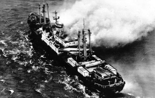 "Операторам датского телевидения удалось снять горящее советское судно, которым оказался дизель-электроход «Оленёк». Трудно было представить, что такое может случиться с кораблем на пути в далекую Антарктиду!