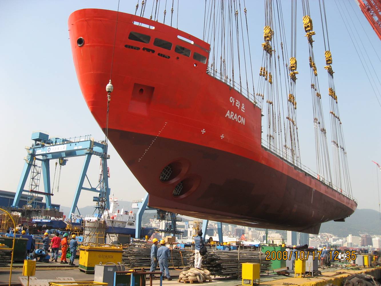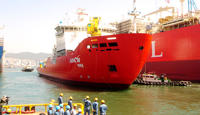 Республика Корея вошла в число стран, которые в состоянии самостоятельно производить ледоколы. 11 июня (2009 г.) на верфи «Ёндо» компании «Ханчжин хэви индастриз» в городе Пусане состоялась церемония спуска на воду первого южнокорейского научно-исследовательского ледокола «Араон» (Araon, 아라온), созданного на основе отечественных технологий. До сих пор Корея не имела своих собственных судов для плавания во льдах и была вынуждена платить немалые деньги на их аренду у других стран.