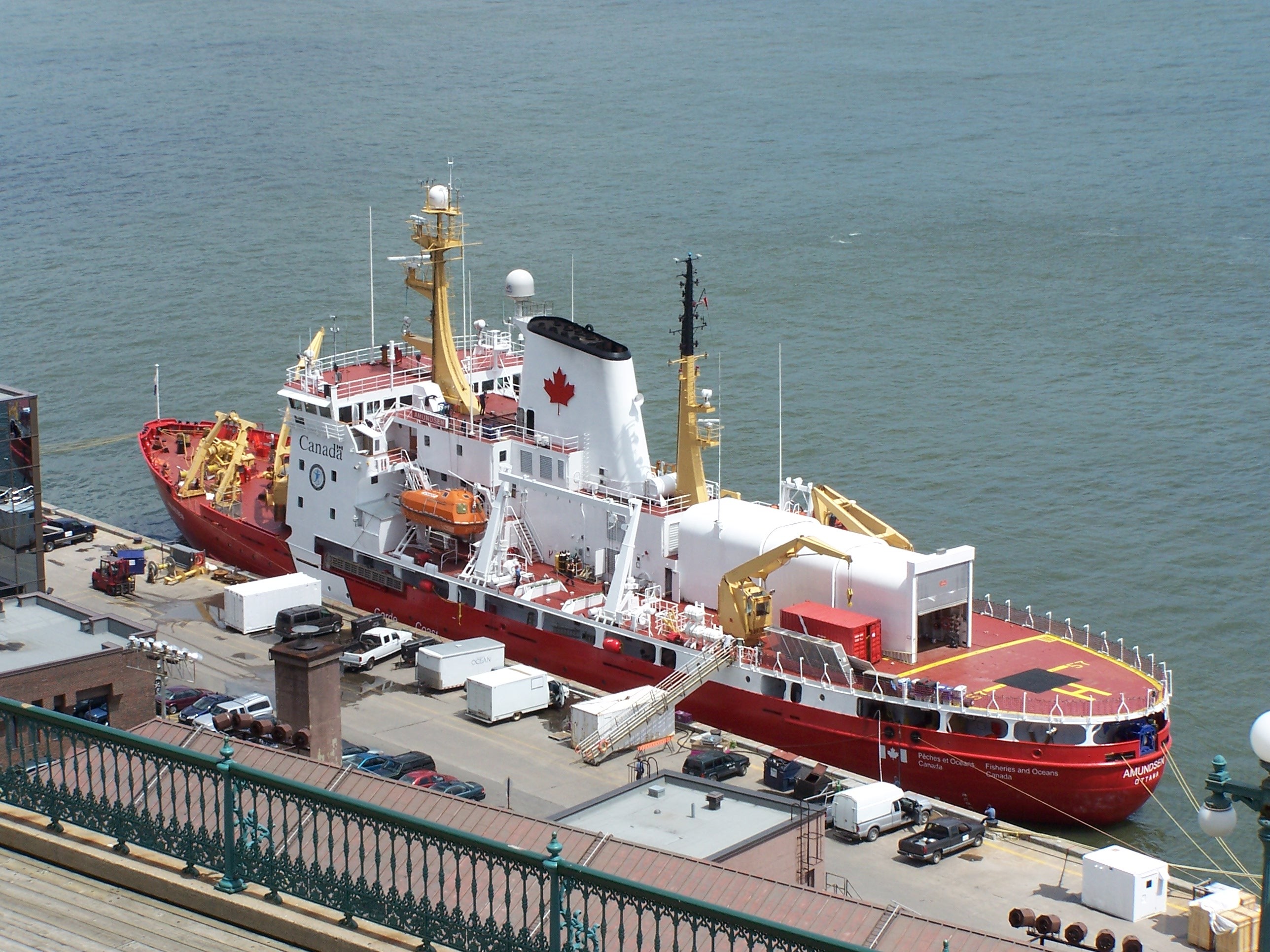 :": Канадский исследовательский ледокол CCGS Amundsen - Class-1200 средне-размерный ледокол базирующийся в Квебеке. Дизель-электрическая установка CCGS Amundsen, мощностью до 11 155 КВт и специализированная форма корпуса позволяют преодолевать ледяные поля толщиной до 1 метра на скорости в 3 узла. Судно спроектировано для долгих автономных плаваний - до 15 000 морских миль без захода в порт, на крейсерской скорости в 14 узлов. CCGS Amundsen это эффективный, универсальный и экономичный ледокол для проведения научных исследований международного уровня.