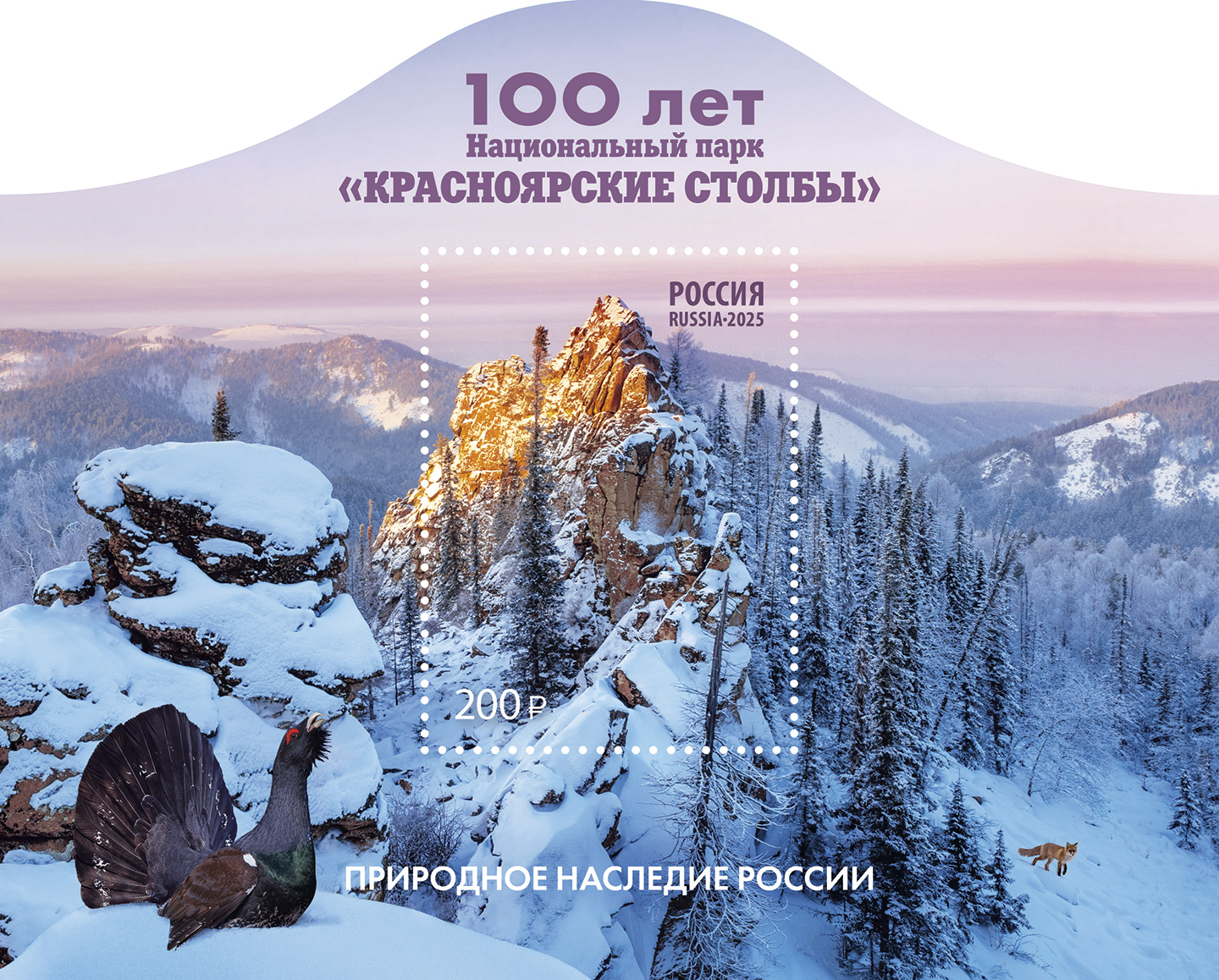 Почтовый блок № 3443. 100 лет Национальному парку «Красноярские Столбы»