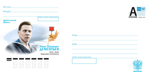 № 99К-2012/2012-141. Архангельская обл. И.П.Дементьев(1912-1944), морской пехотинецДизайнер – Бетрединова Х.