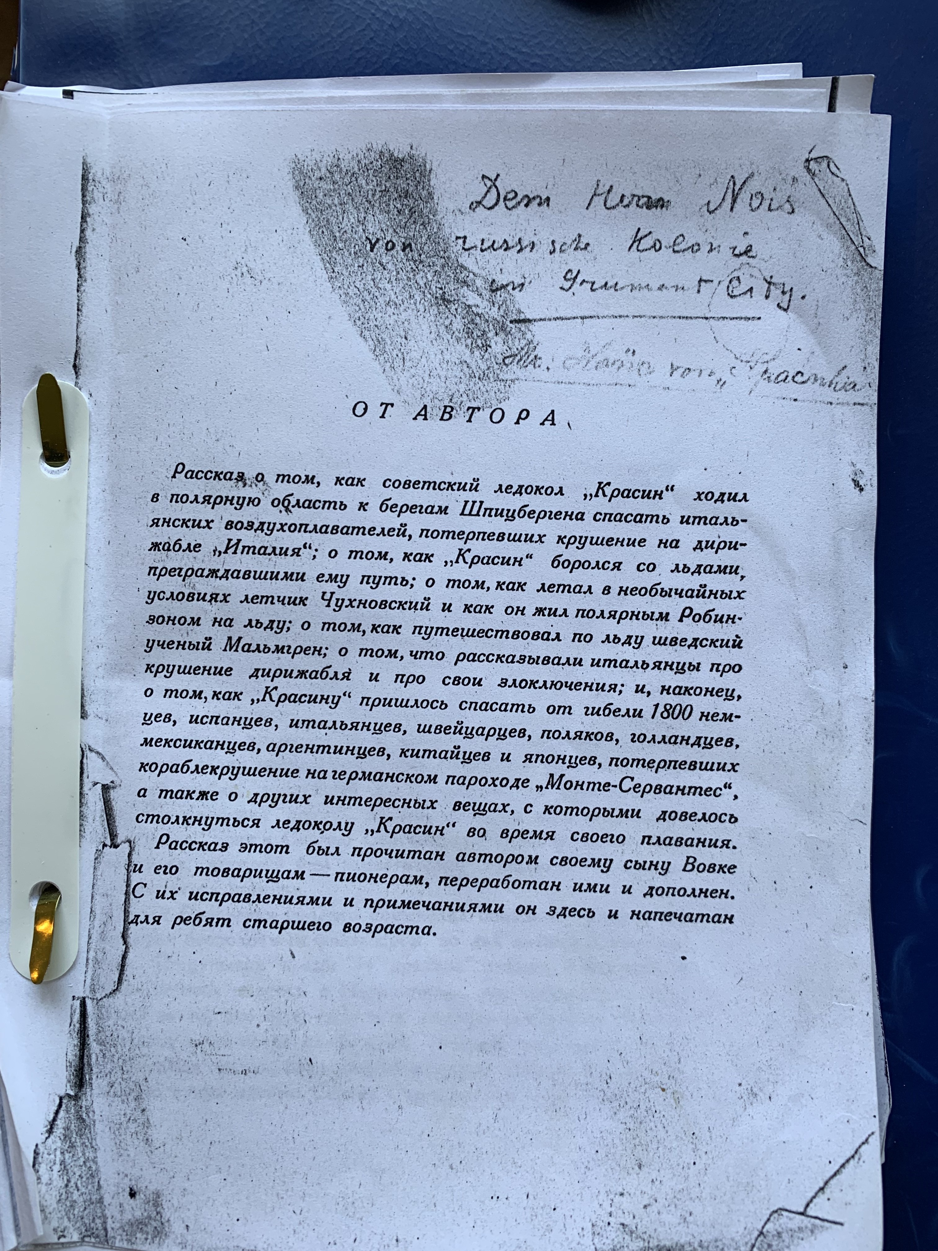 В 2019 году я был в доме Хильмара Ноиcа в Норвегии и там мне показали одну книгу (копию) на русском языке. Она была про ледокол Красин.