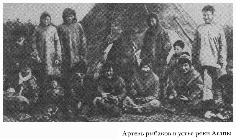 Через 80 километров мы приплыли к устью другого крупного притока Пясины — Агапы, впадающей слева. Жилых строений и даже развалин здесь не видно. Стоят три чума долган, прибывших сюда для лова рыбы, которой Агапа особенно богата. Рыбаки рассказывают, что в прошлом году добыли до сотни осетров, среди которых несколько штук очень крупных — в рост человека.