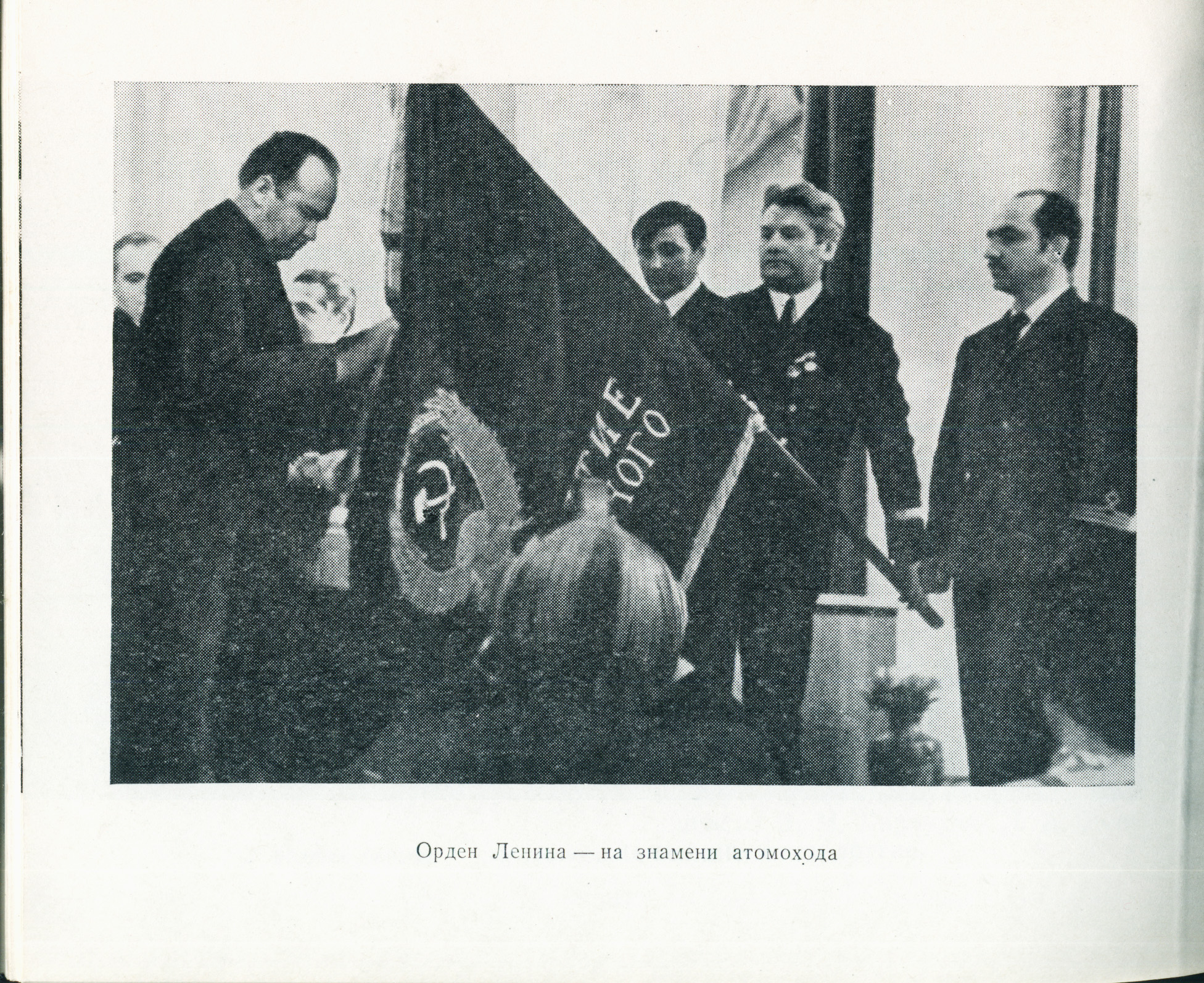 «Мурманск пароходство Игнатюку Данилову капитану ледокола «Ленин» Соколову = Дирекция партком местком и коллектив Института атомной энергии им. И. В. Курчатова сердечно поздравляют экипаж атомного ледокола «Ленин» Мурманское пароходство с высокой правительственной наградой атомного ледокола «Ленин», заслуженной самоотверженным трудом в суровой Арктике, мы гордимся вашими успехами и восхищены вашей способностью решать важные народнохозяйственные задачи в сложных условиях. Желаем дальнейших успехов на благо нашей Отчизны.