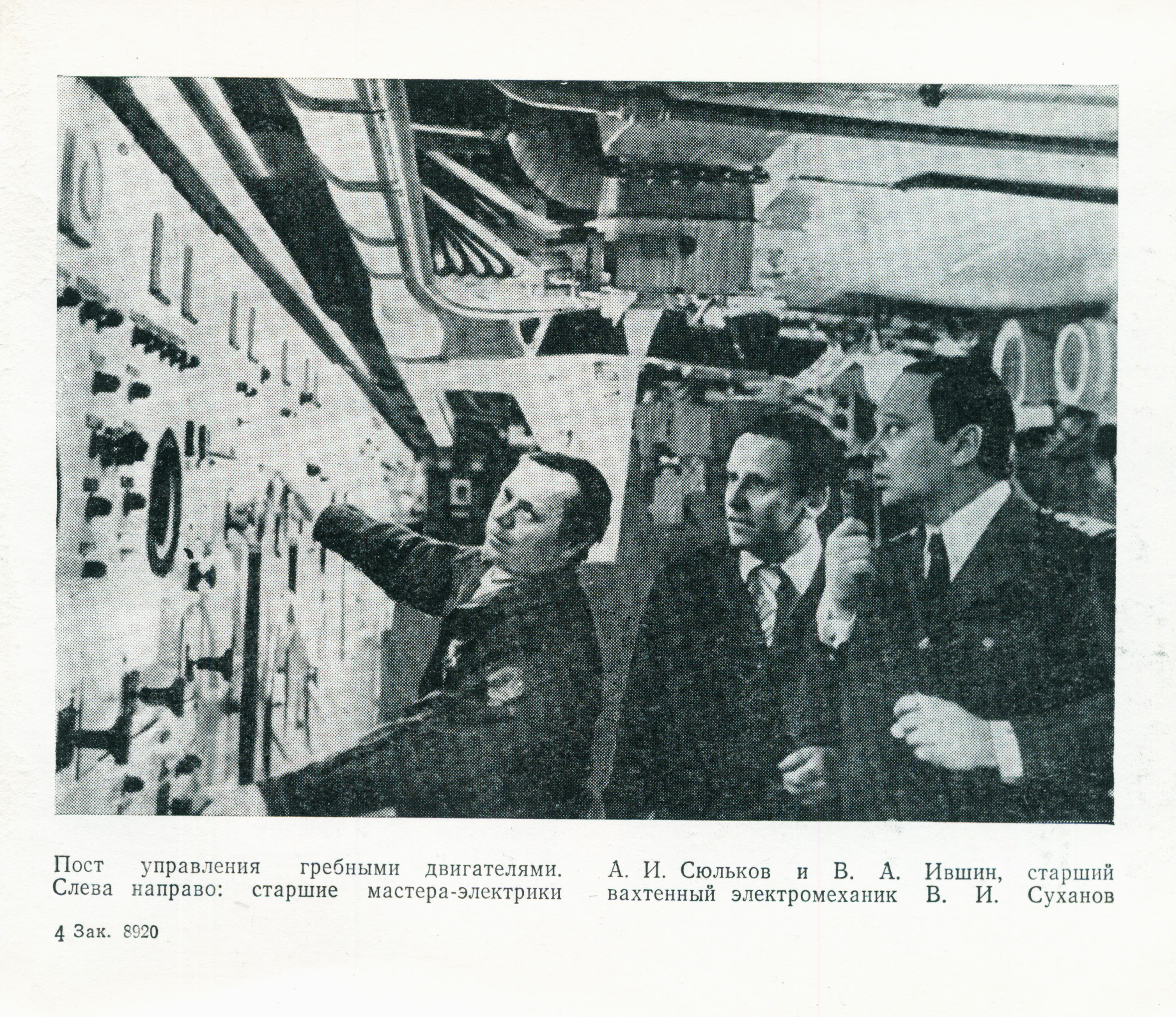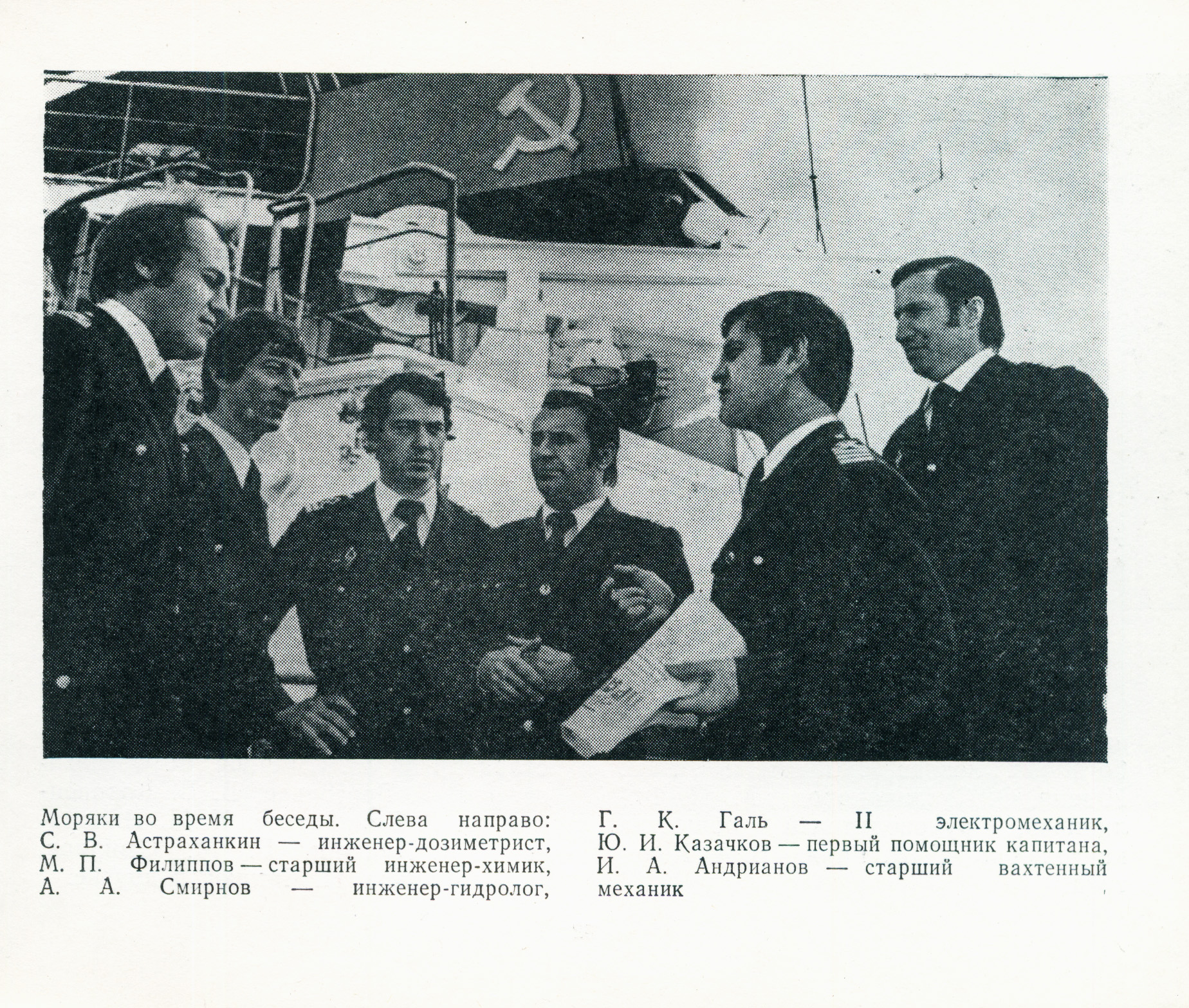 Подводя итоги навигации 1971 года, капитан отметил хорошую работу большинства членов экипажа. Среди отличившихся - старшие инженеры-операторы И. А. Андрианов, В. Г. Ханларов, помощник старшего вахтенного механика Ю. К. Степанов, мастера АППУ М. В. Зенков и Ф. Ф. Асхадуллин, механик А. В. Плоский, старший техник-дезактиватор Н. Т. Шмелев, штурманы Е. А. Вавилов, 3. А. Вибах, радиооператоры В. П. Кузнецов, К. В. Маслов, В. Т. Серегин, электромеханики А. К. Сукач, К. К. Хомченко, мастер-электрик Г. К. Галь, электрики И. С. Белый, Н. П. Бурмистров, А. В. Попов, В. А. Соколов, машинисты В. М. Карпухин, Л. А. Лешков и многие другие.