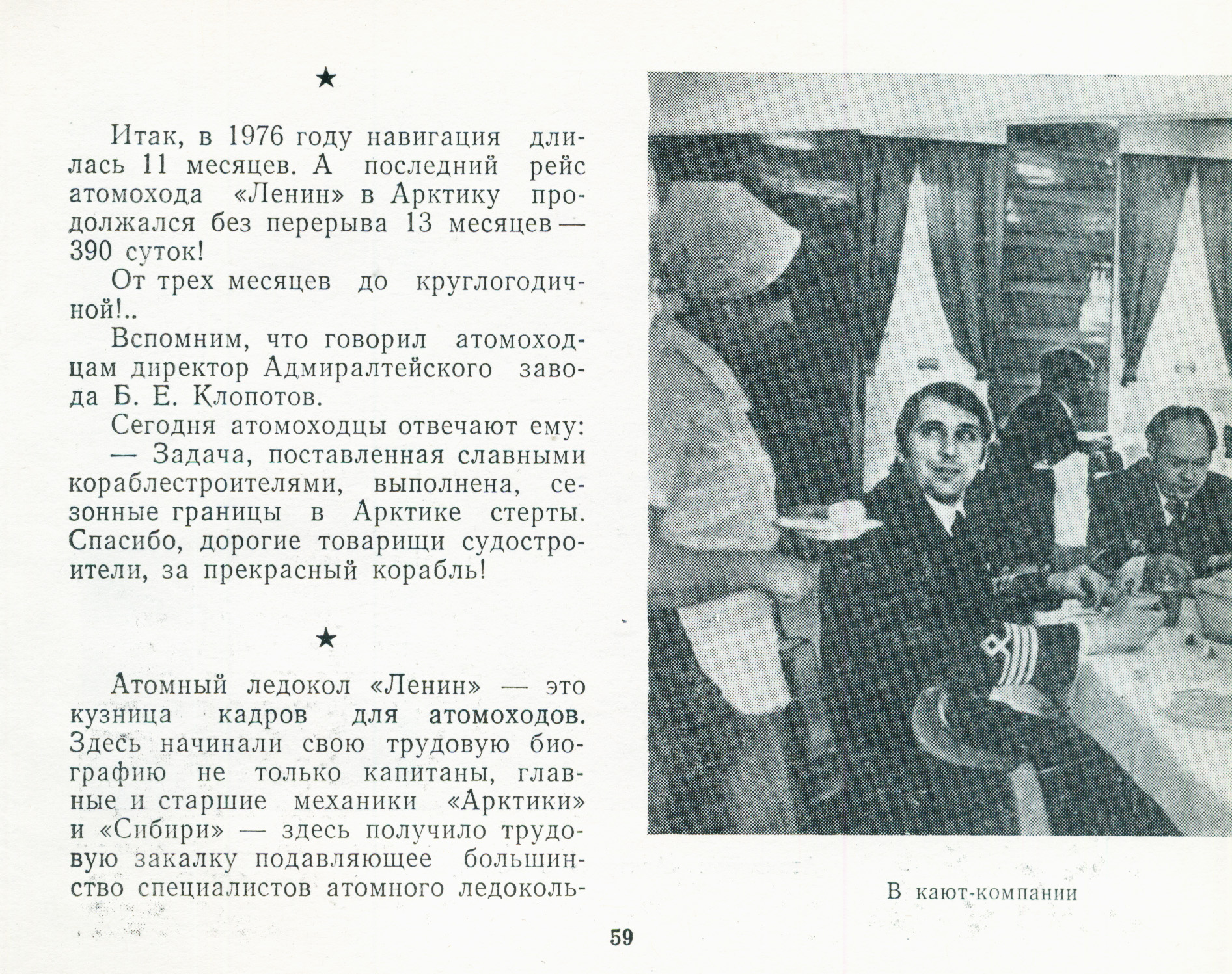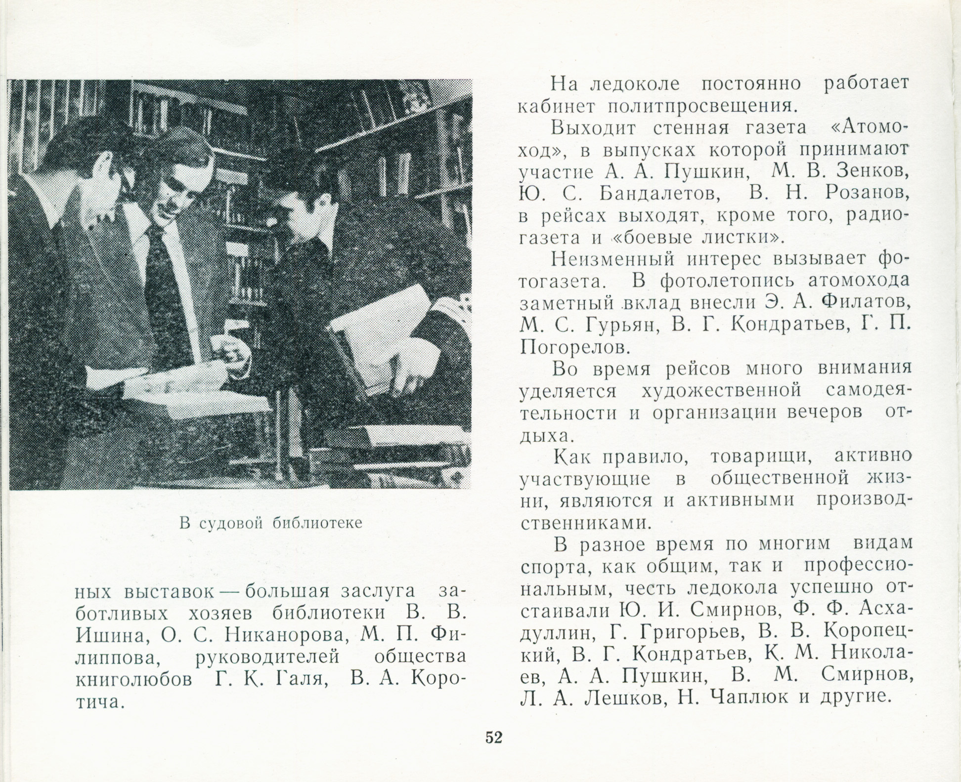 Выходит стенная газета «Атомоход», в выпусках которой принимают участие А. А. Пушкин, М. В. Зенков, Ю. С. Бандалетов, В. Н. Розанов, в рейсах выходят, кроме того, радиогазета и «боевые листки».