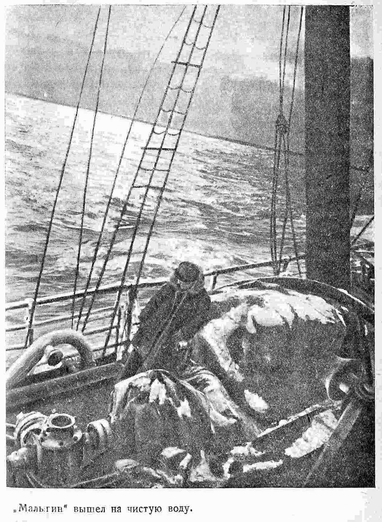 — Всем! Всем! Всем!—говорит «Малыгин». — Иду в море.