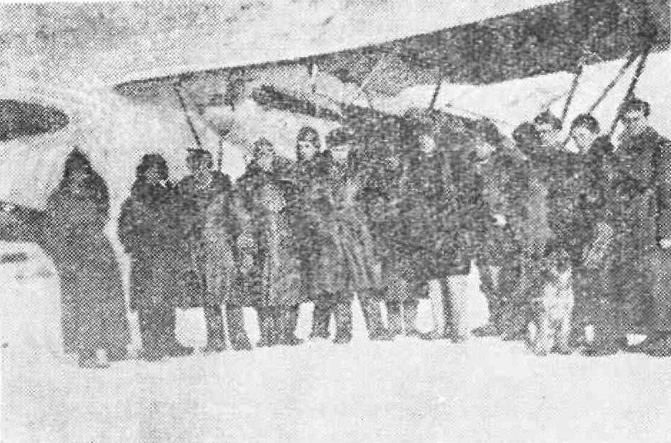 десятков километров приехали посмотреть самолет. Но попадаются и дикие: на следующий день очевидец рассказывал, как он по пути встретился с юкагирами. Они увидели летящий самолет, товарищ обрадованно указывал на него, опросил у юкагира: нравится ли ему птичка. Юкагир побледнел я бросился опрометью бежать.