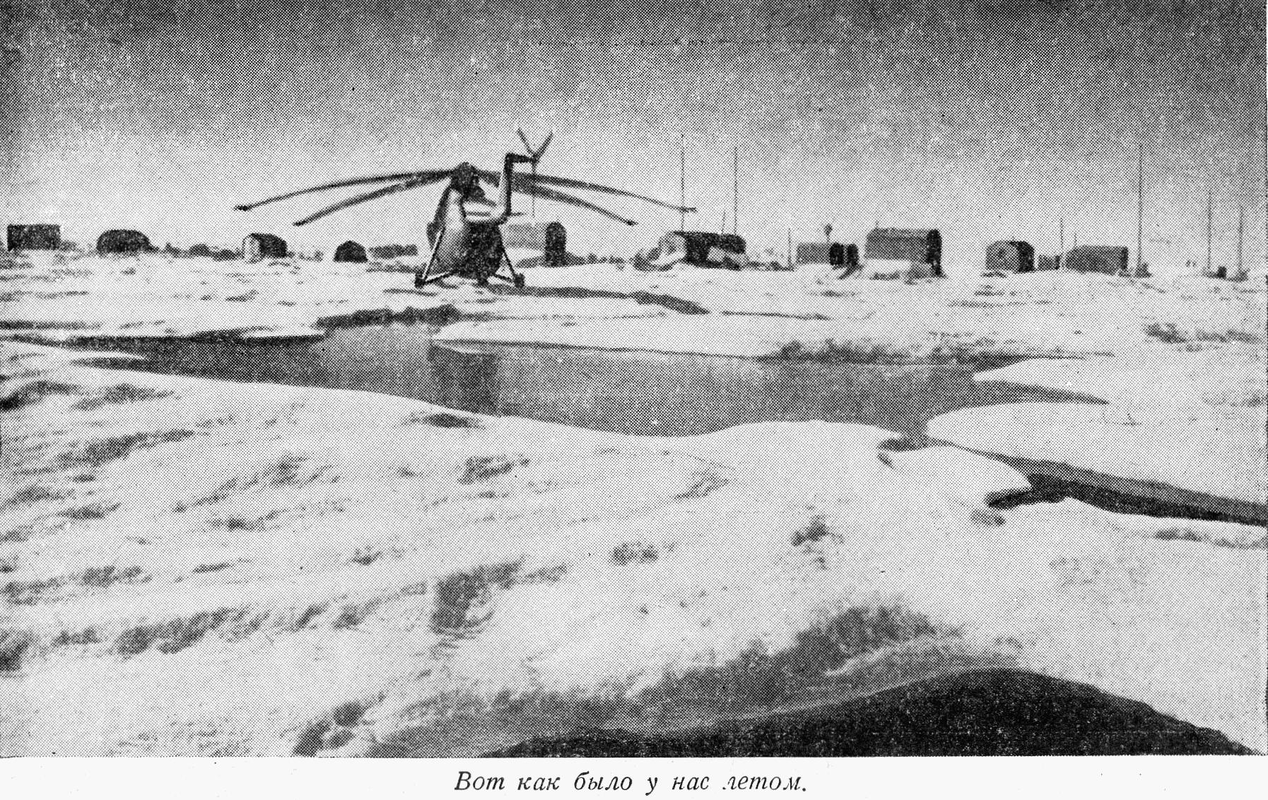 В этот день на станции побывало четыре самолета. И только успел вылететь в обратный путь последний самолет, как трещину стало разводить и аэродром стал удаляться. Через несколько часов образовалось разводье в 200 м. Завтра придется принимать самолеты на другую полосу.