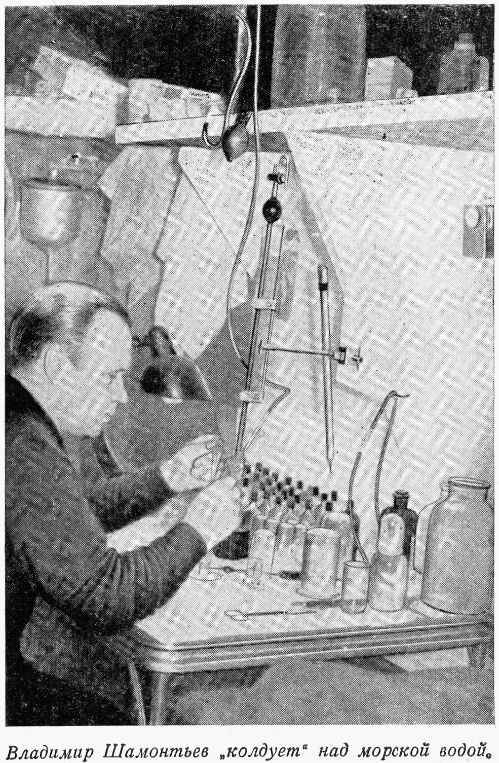 С 1952 г. Владимир Александрович работает в Арктическом и Антарктическом научно-исследовательском институте. Несколько раз он руководил океанографическими экспедициями в Гренландском море, участвовал в высокоширотных воздушных экспедициях, дрейфовал на станции «Северный полюс-3». В 1960—1961 гг. В. А. Шамонтьев возглавлял дрейфующую научную станцию «Северный полюс-9».30 марта 1960 г. Последние минуты перед вылетом. На Ленинградском аэродроме собрались друзья и родственники, чтобы проводить нас в далекий путь, к сердцу Арктики.