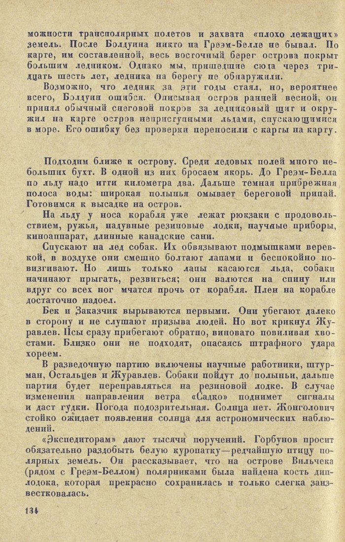 можности трансполярных полетов и захвата «плохо лежащих» земель. После Болдуина никто на Греэм-Белле не бывал. По карте, им составленной, весь восточный берег острова покрыт большим ледником. Однако мы, пришедшие сюда через тридцать шесть лет, ледника на берегу по обнаружили.