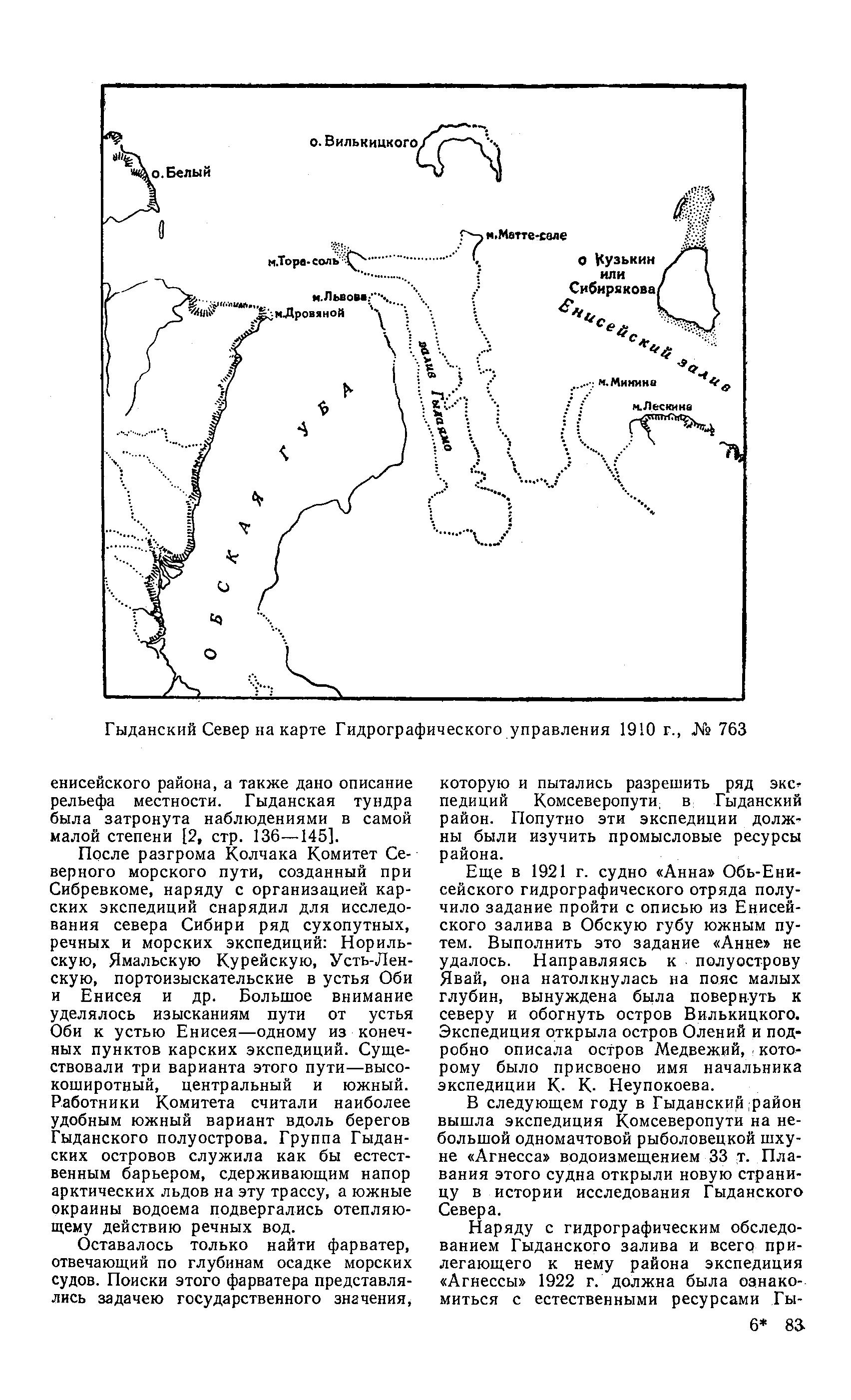 С 1894 г. в течение 10 лет работами гидрографической экспедиции Северного Ледовитого океана под руководством А. И. Вилькицкого, а затем А. И. Варнека и Ф. К. Дриженко были освещены устья Оби и Енисея, но Гыданский район почти не был затронут. Правда, этой экспедицией был описан остров Вилькицкого {1}, а также уточнено положение острова Сибирякова (Кузькина).