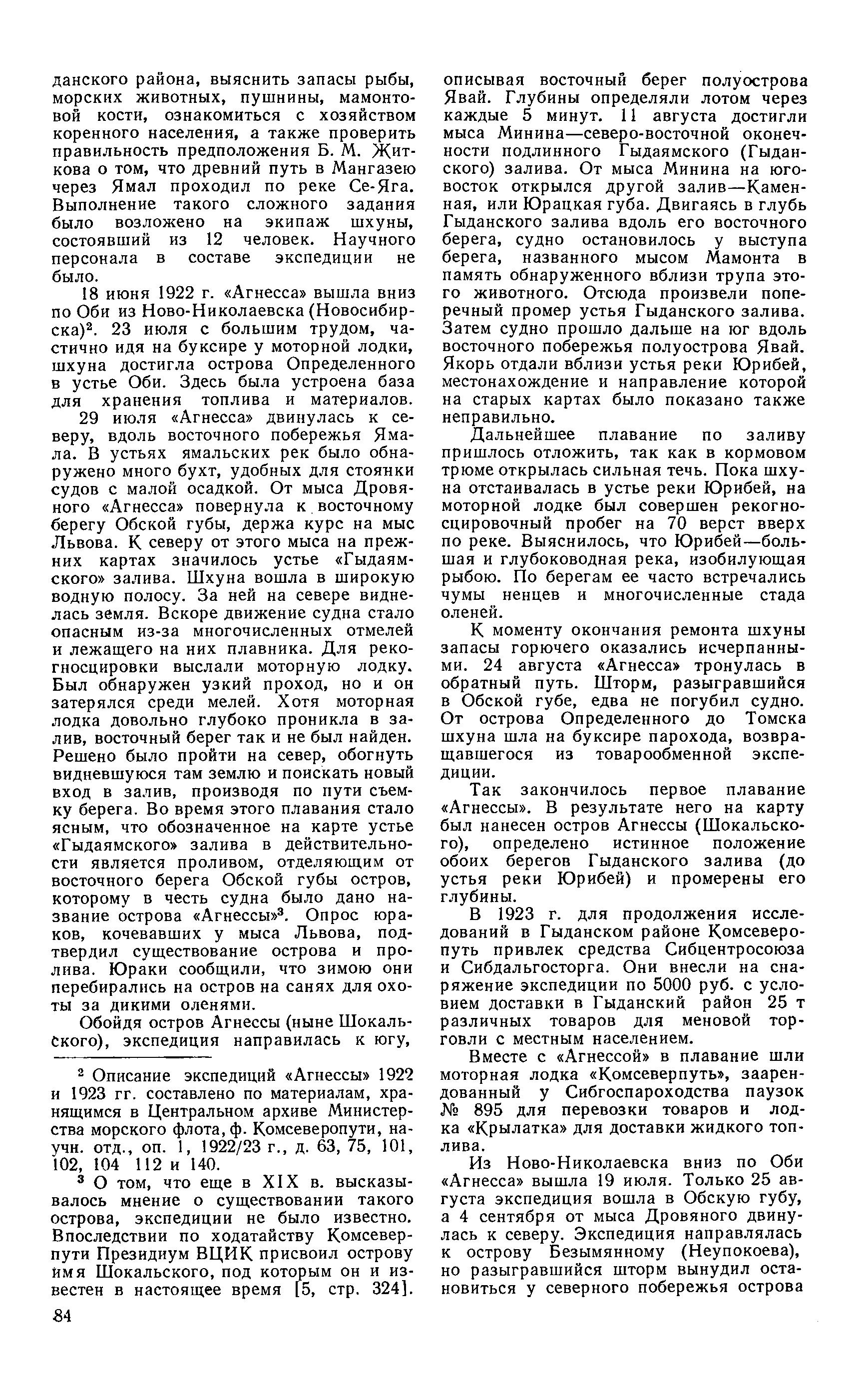 {2} Описание экспедиций «Агнессы» 1922 и 1923 гг. составлено по материалам, хранящимся в Центральном архиве Министерства морского флота, ф. Комсеверопути, научн. отд., oп. 1, 1922/23 г., д. 63, 75, 101, 102, 104 112 и 140.