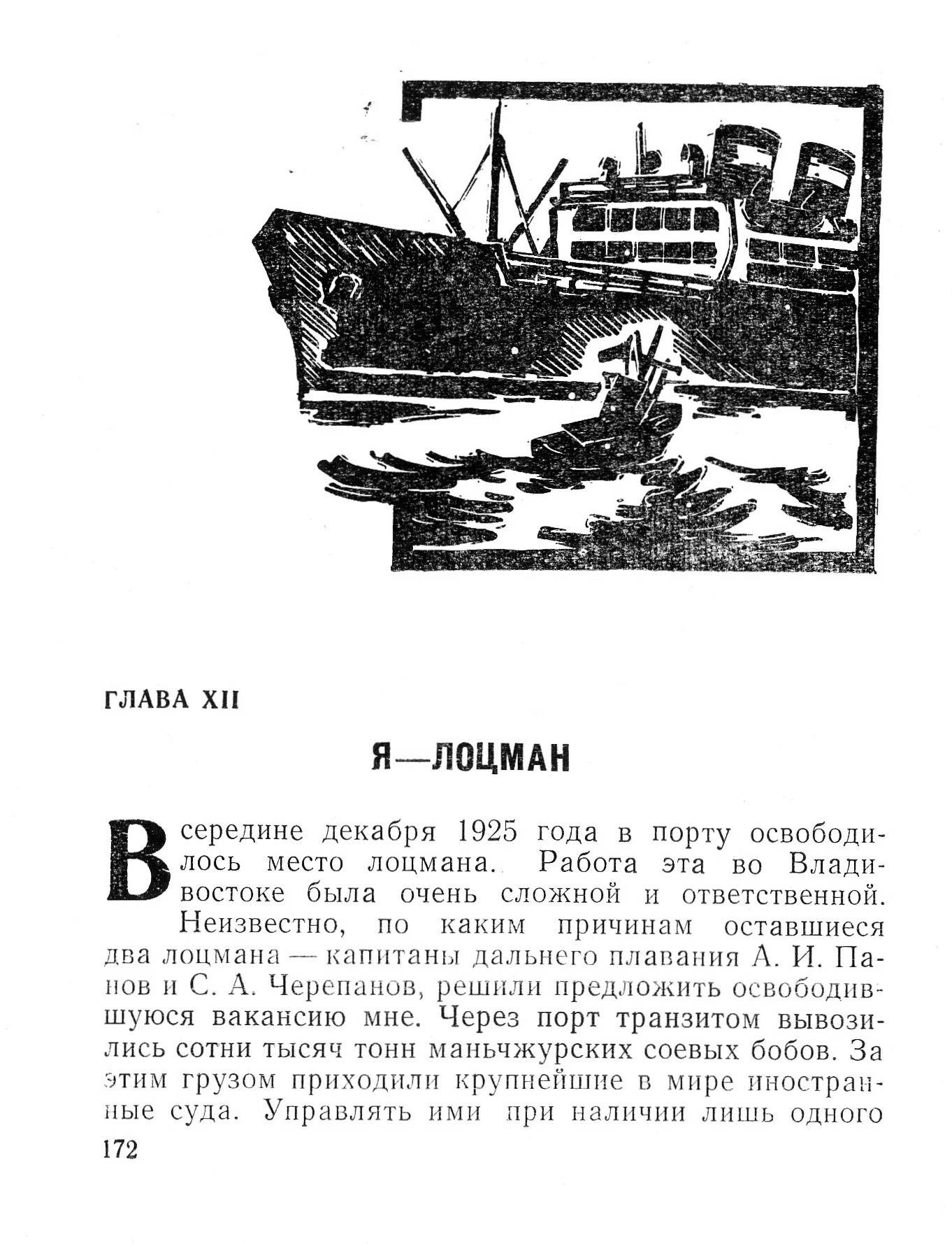 ГЛАВА XIIЯ — ЛОЦМАНВ середине декабря 1925 года в порту освободилось место лоцмана. Работа эта во Владивостоке была очень сложной и ответственной.