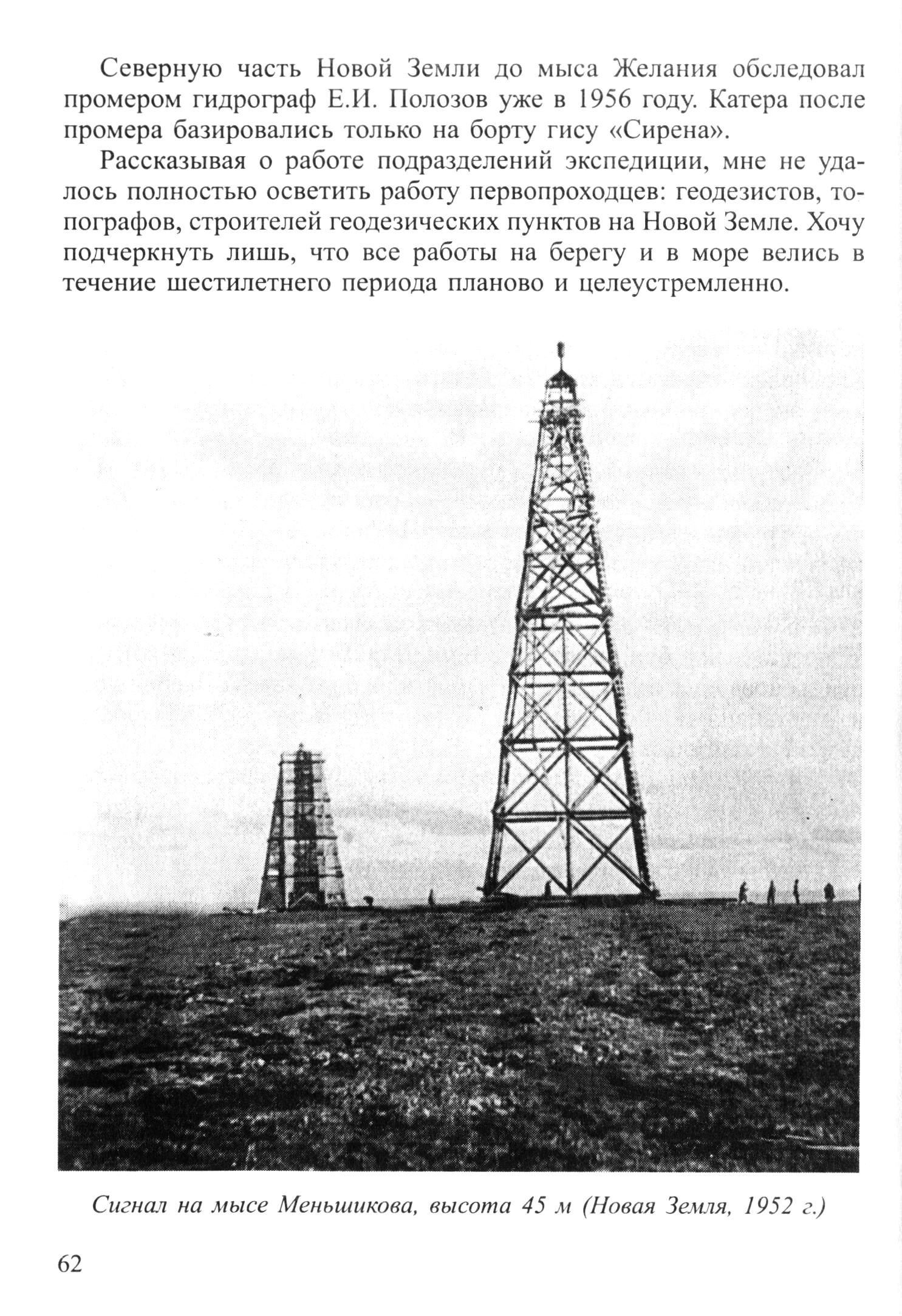 Сигнал на мысе Меньшикова, высота 45 м (Новая Земля, 1952 г.)[62]