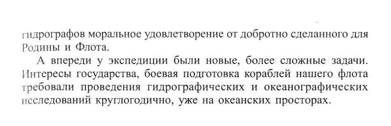 А впереди у экспедиции были новые, более сложные задачи. Интересы государства, боевая подготовка кораблей нашего флота требовали проведения гидрографических и океанографических исследований круглогодично, уже на океанских просторах.