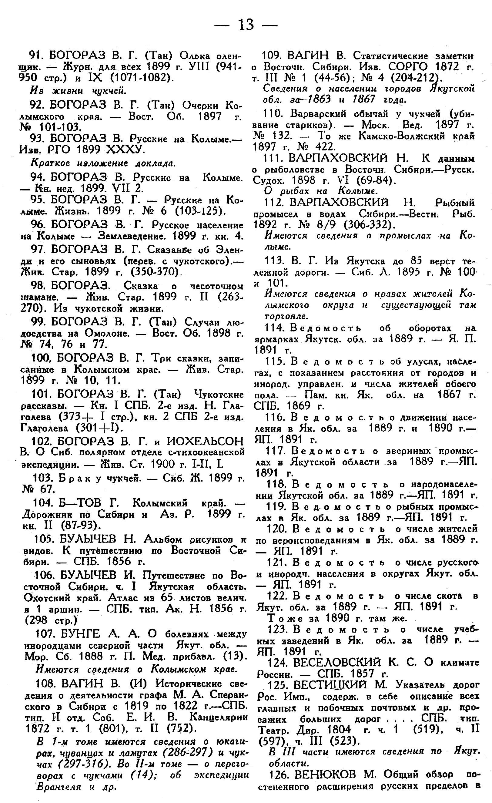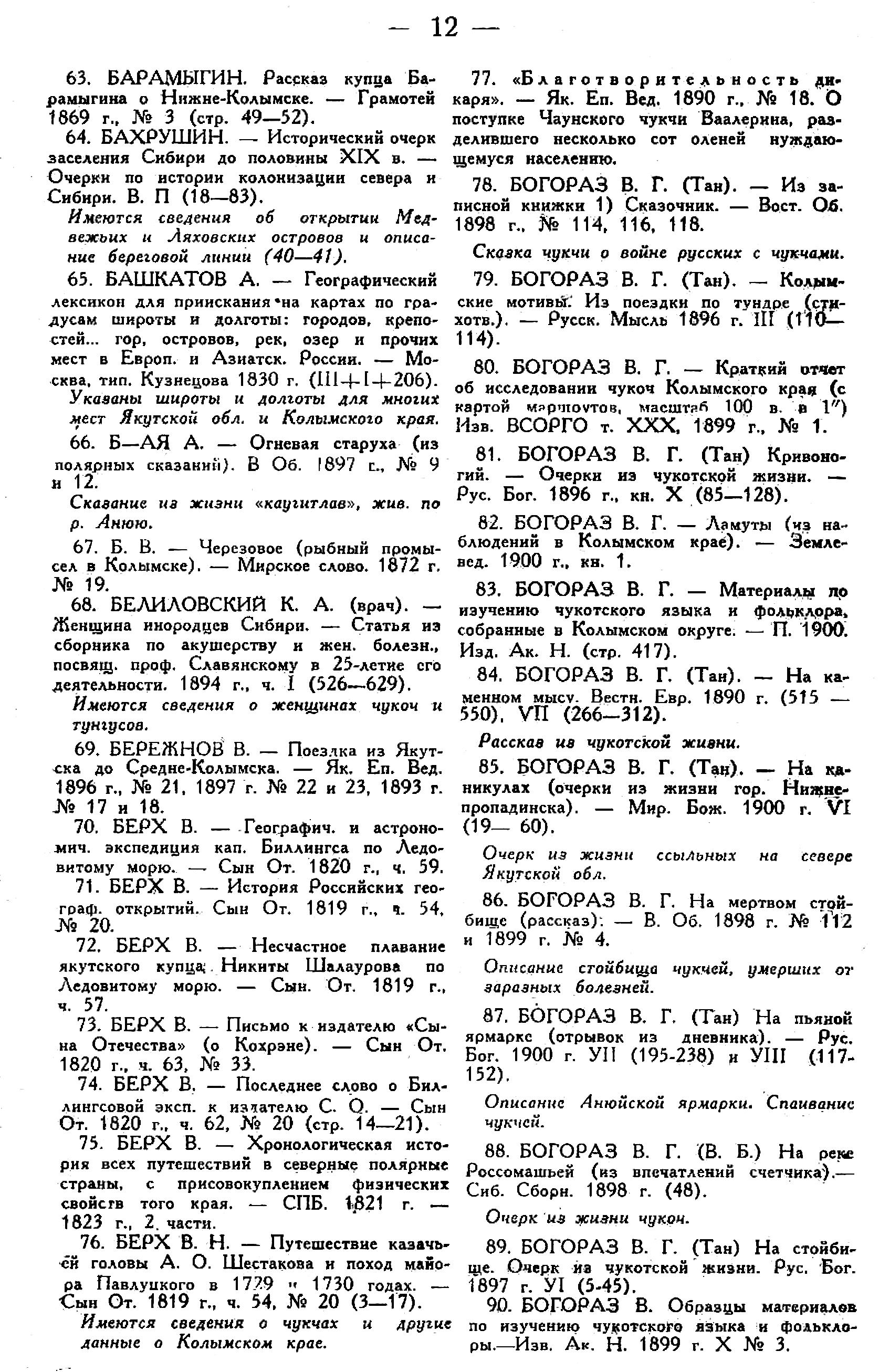81. БОГОРАЗ В. Г. (Тан) Кривоногий. — Очерки из чукотской жизни. — Рус. Бог. 1896 г., кн. X (85—128).