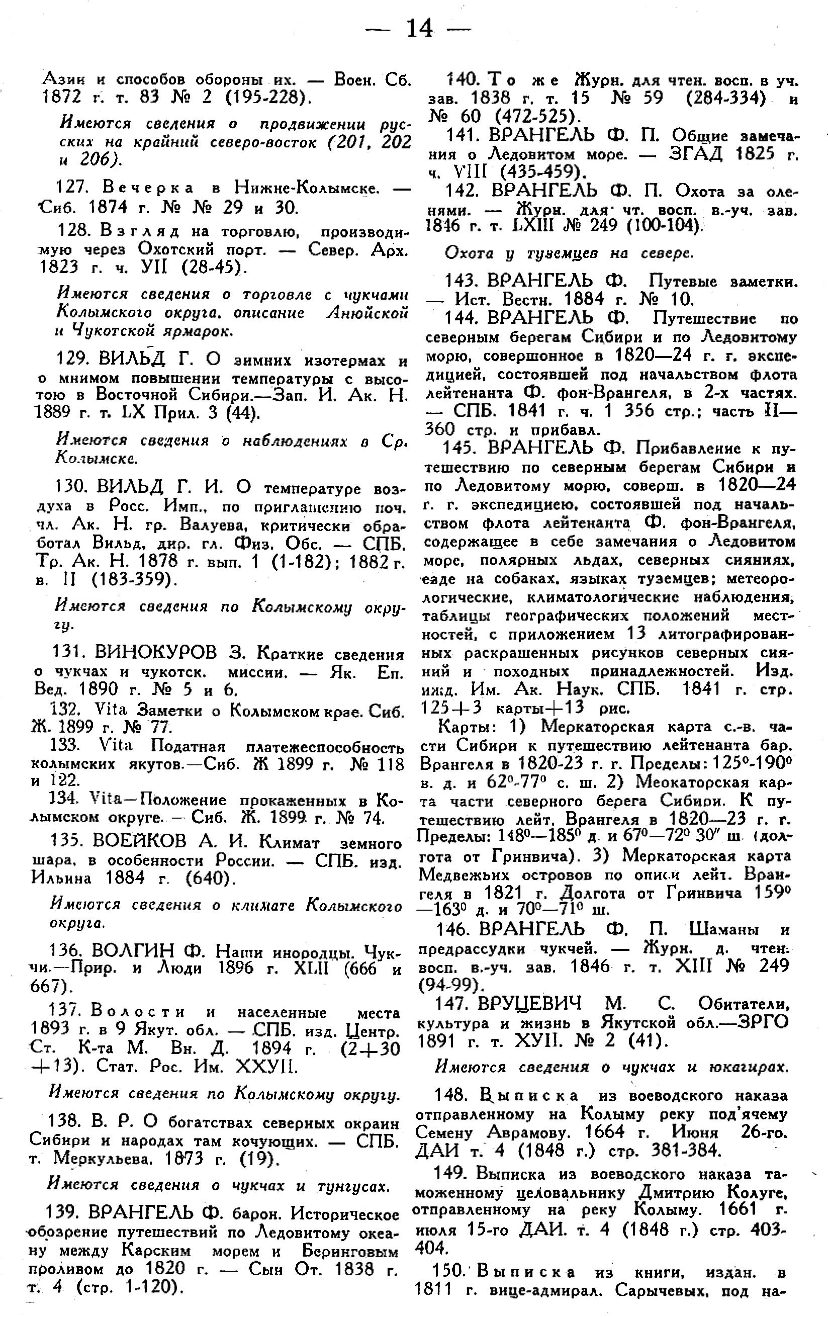 146. ВРАНГЕЛЬ Ф. П. Шаманы и предрассудки чукчей. — Журн. д. чтен; восп. в.-уч. зав. 1846 г. т. XIII № 249 (94-99).