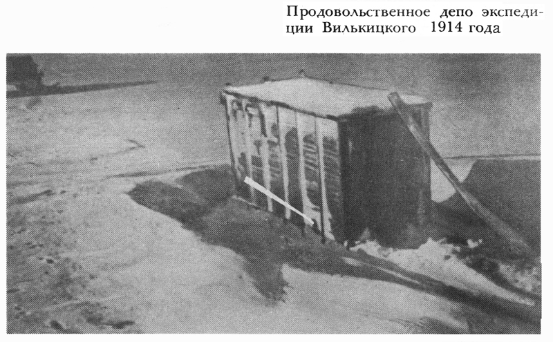 Лагерь разбили у мыса Могильного, названного так потому, что здесь, в зимовку 1914/15 годов русской гидрографической экспедиции, были погребены два ее участника — лейтенант Жохов и кочегар Ладоничев. Могилы были обнесены оградой из корабельных цепей, внутри стояли два железных креста, а рядом гидрографический знак — ажурная четырехметровая железная пирамида. Метрах в 50 по склону стоял ящик, в котором был устроен склад продовольствия, состоящий из консервов, изготовленных в 1911 году. Консервы — борщ и щи с кашей и мясом — сохранили превосходный вкус, несмотря на почти 25-летнюю давность. Банки были хорошо отлакированы, потому почти не повреждены ржавчиной. Мы ели эти консервы с удовольствием и несколько штук взяли с собой, чтобы показать и дать попробовать на базе. Ночью был сорокаградусный мороз, но днем несколько потеплело.