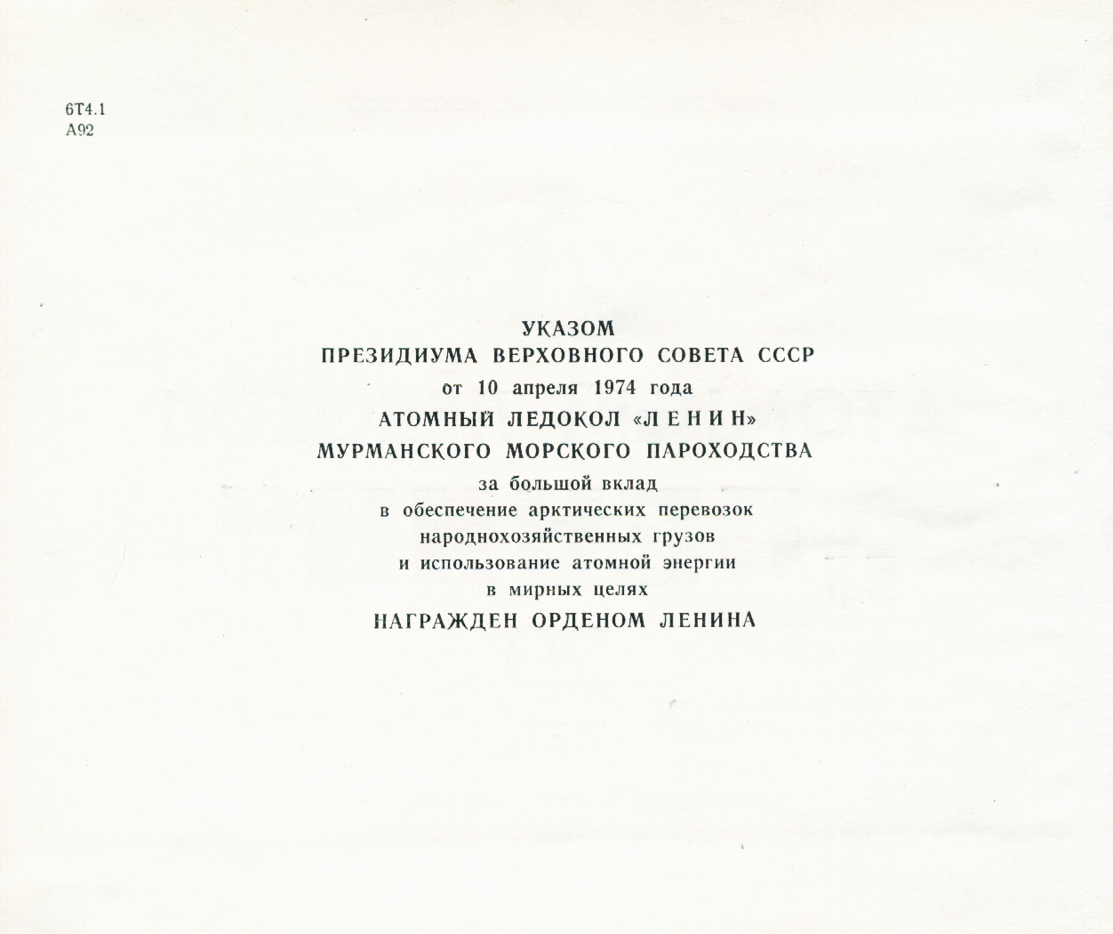АТОМНЫЙ ЛЕДОКОЛ «ЛЕНИН» МУРМАНСКОГО МОРСКОГО ПАРОХОДСТВА
