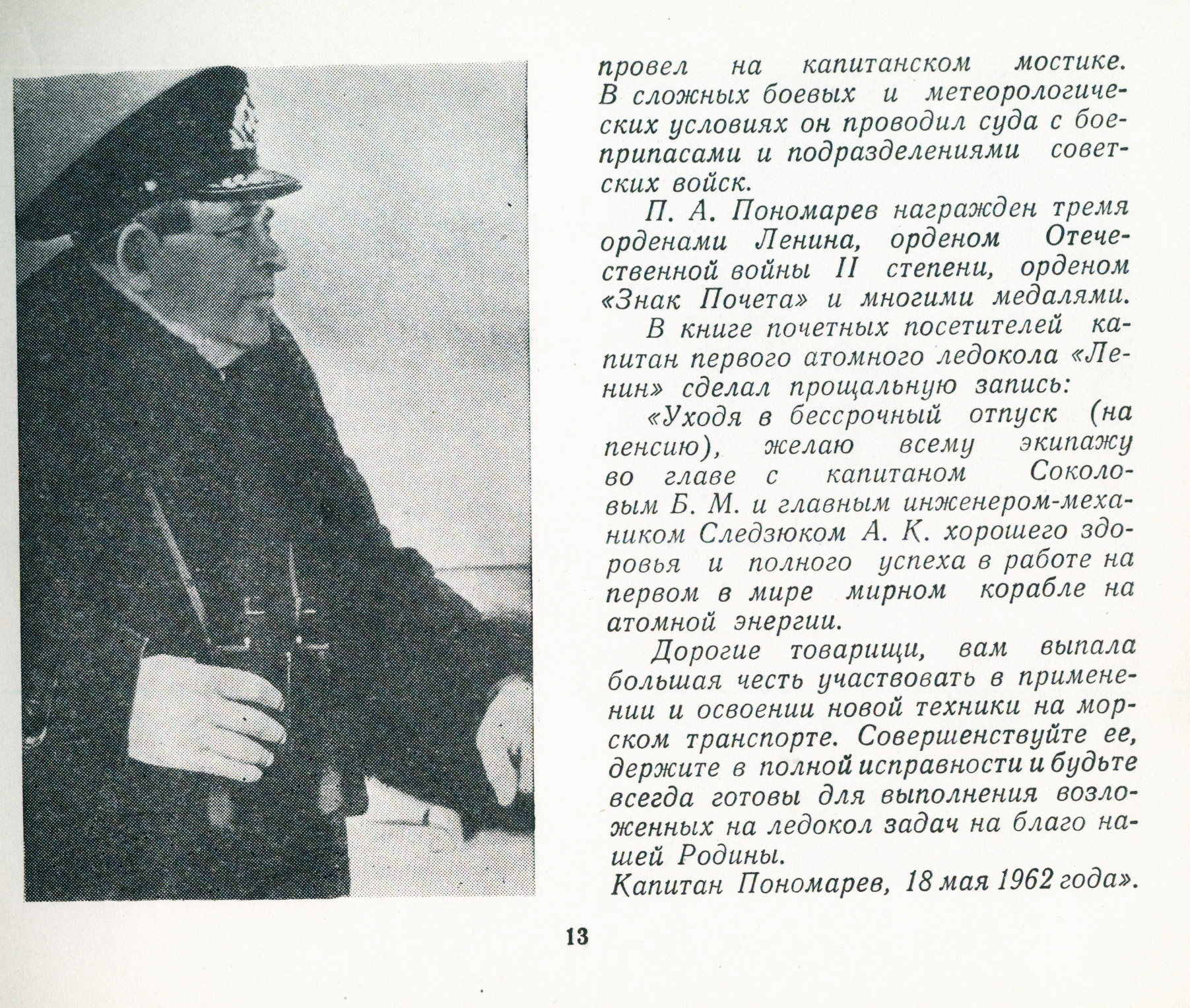 Велико было доверие, оказанное партией и народом, и велика была ответственность моряков Мурманского морского пароходства, в чьи руки передавался атомный ледокол для дальнейшей эксплуатации. Сама атмосфера того времени и обстановка в пароходстве были такими, что назначение на атомный ледокол рассматривалось как самое почетное.