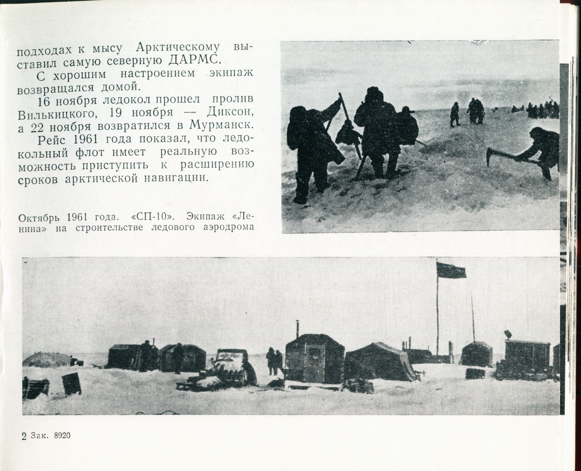 Перед выходом в этот ответственный рейс на ледокол прибыла экспедиция: коллектив полярников будущей станции «СП-10», строители и корреспонденты различных газет.