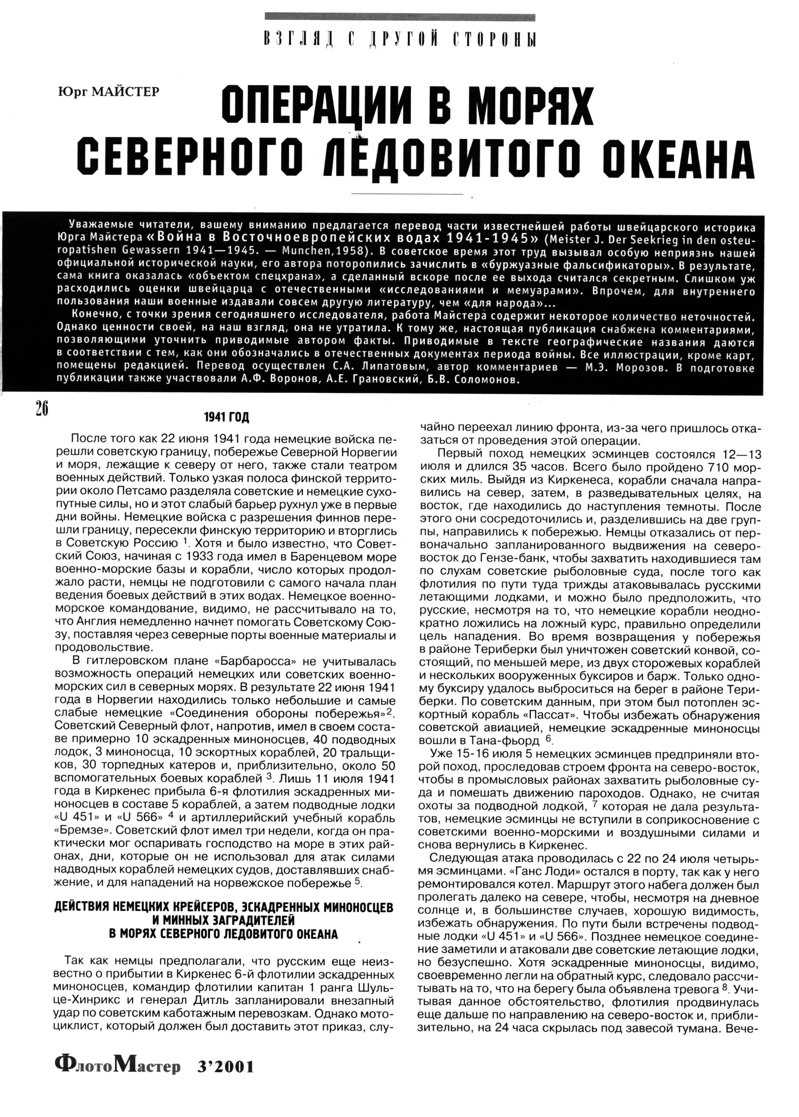 1941 ГОДПосле того как 22 июня 1941 года немецкие войска перешли советскую границу, побережье Северной Норвегии и моря, лежащие к северу от него, также стали театром военных действий. Только узкая полоса финской территории около Петсамо разделяла советские и немецкие сухопутные силы, но и этот слабый барьер рухнул уже в первые дни войны. Немецкие войска с разрешения финнов перешли границу, пересекли финскую территорию и вторглись в Советскую Россию