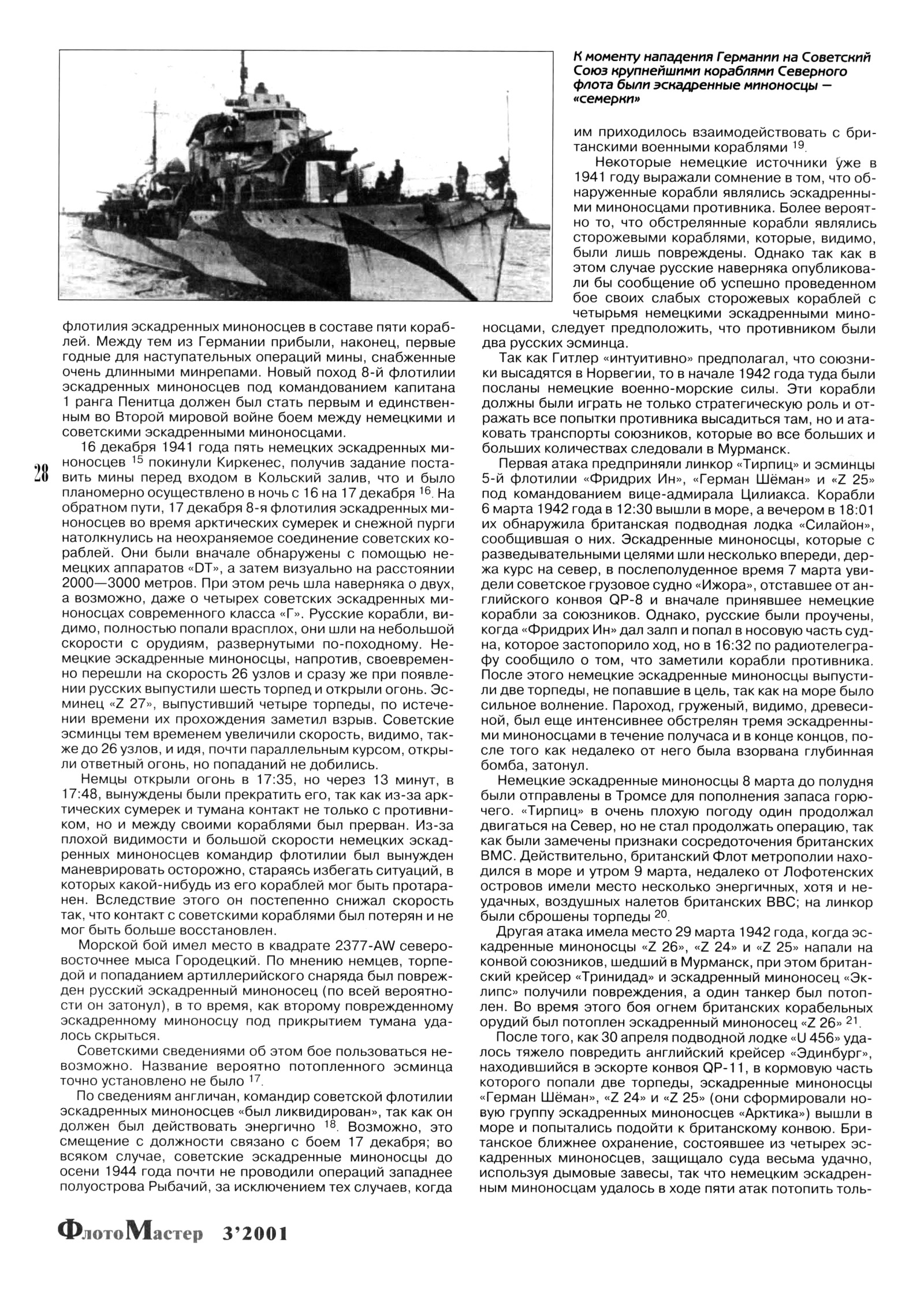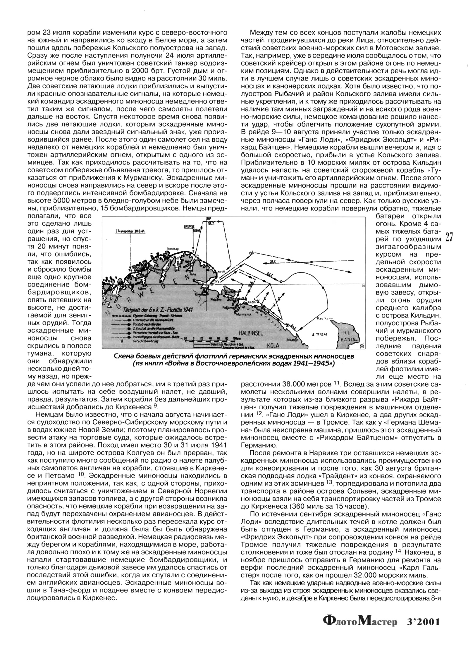 {3 Реально советский Северный флот (до мобилизации кораблей других ведомств) включал 8 эсминцев, З СКР, 1 минный заградитель, 2 ТЩ, 15 ПЛ и 16 СКА }. Лишь 11 июля 1941 года в Киркенес прибыла 6-я флотилия эскадренных миноносцев в составе 5 кораблей, а затем подводные лодки «U 451» и «U 566»