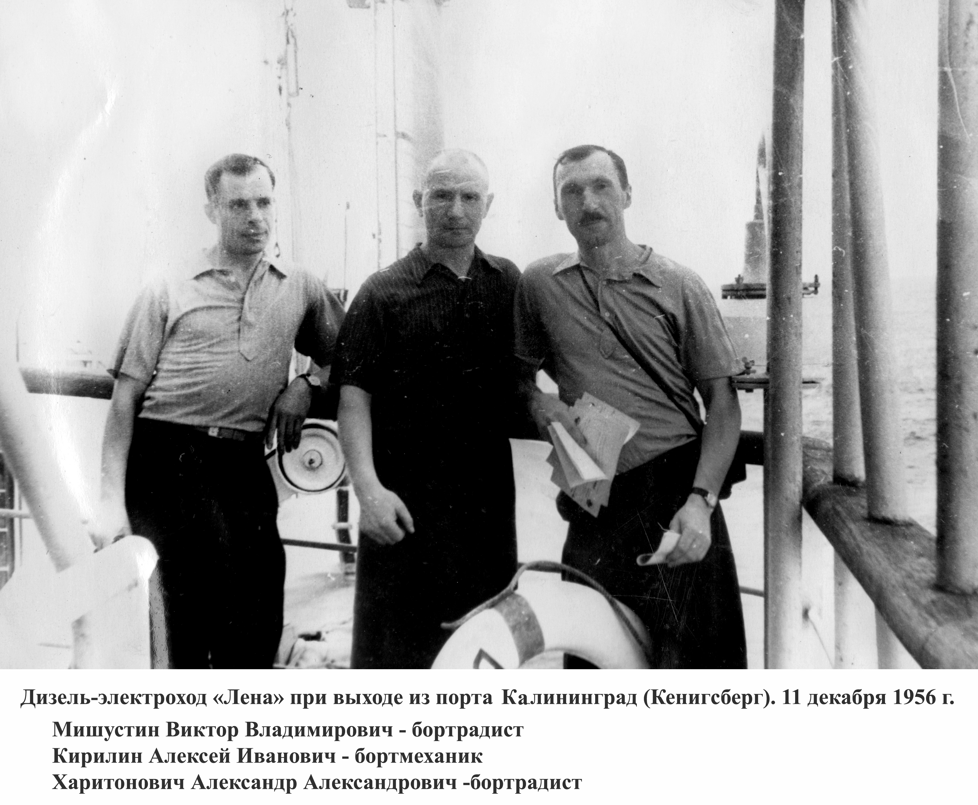 10 декабря 1956 года.Переехал на «Лену», в каюту № 3. В 23.00 погрузили контейнеры с самолетами на корабль. Первый раз ужинал на корабле и остался ночевать.