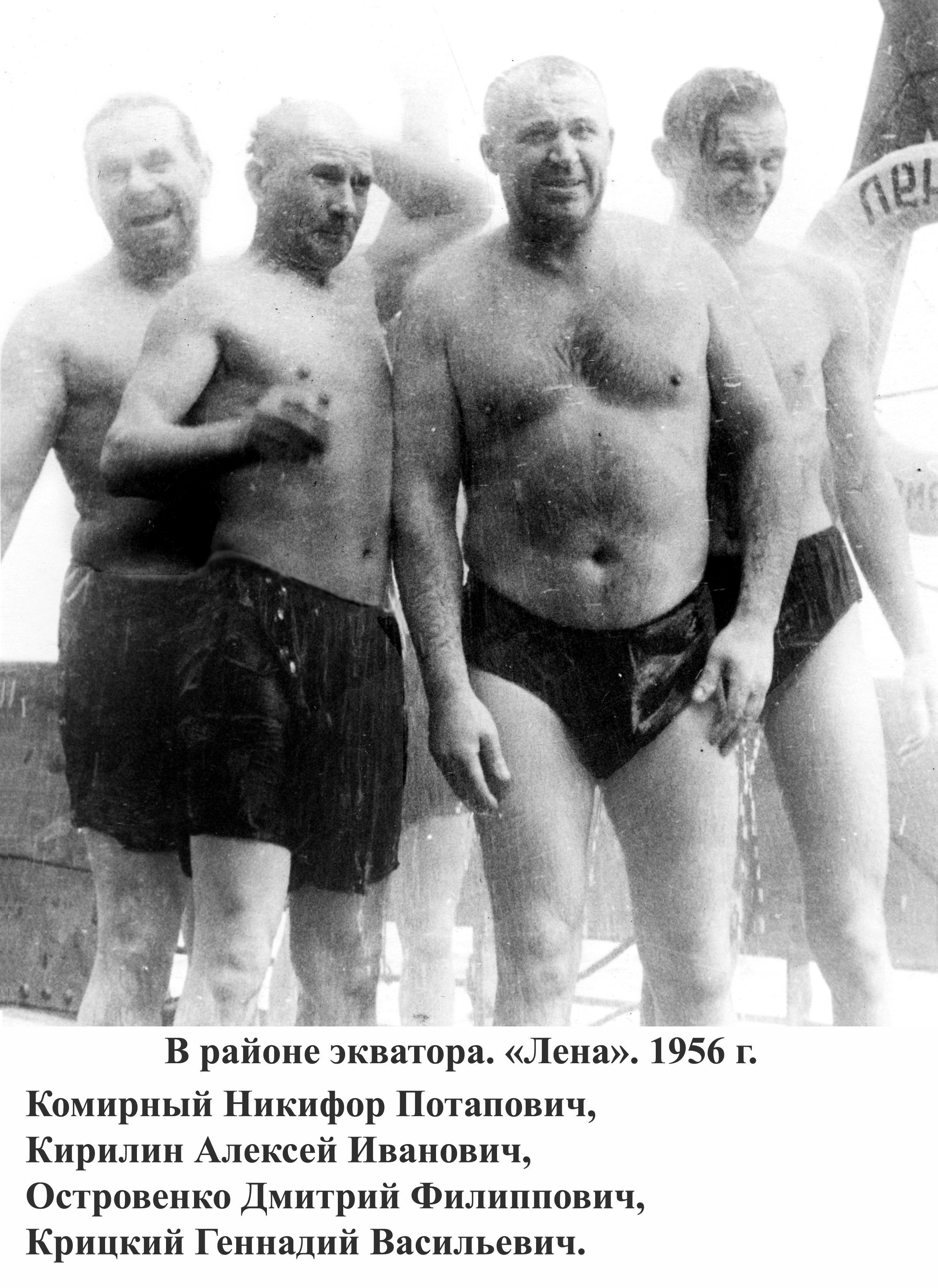9 декабря 1956 года.Заместитель министра морского флота Василий Федотович Бурханов в большей кают-компании корабля «Лена» провел совещание со всеми членами Антарктической экспедиции, где приветствовал и напутствовал нас на удачное выполнение работ.