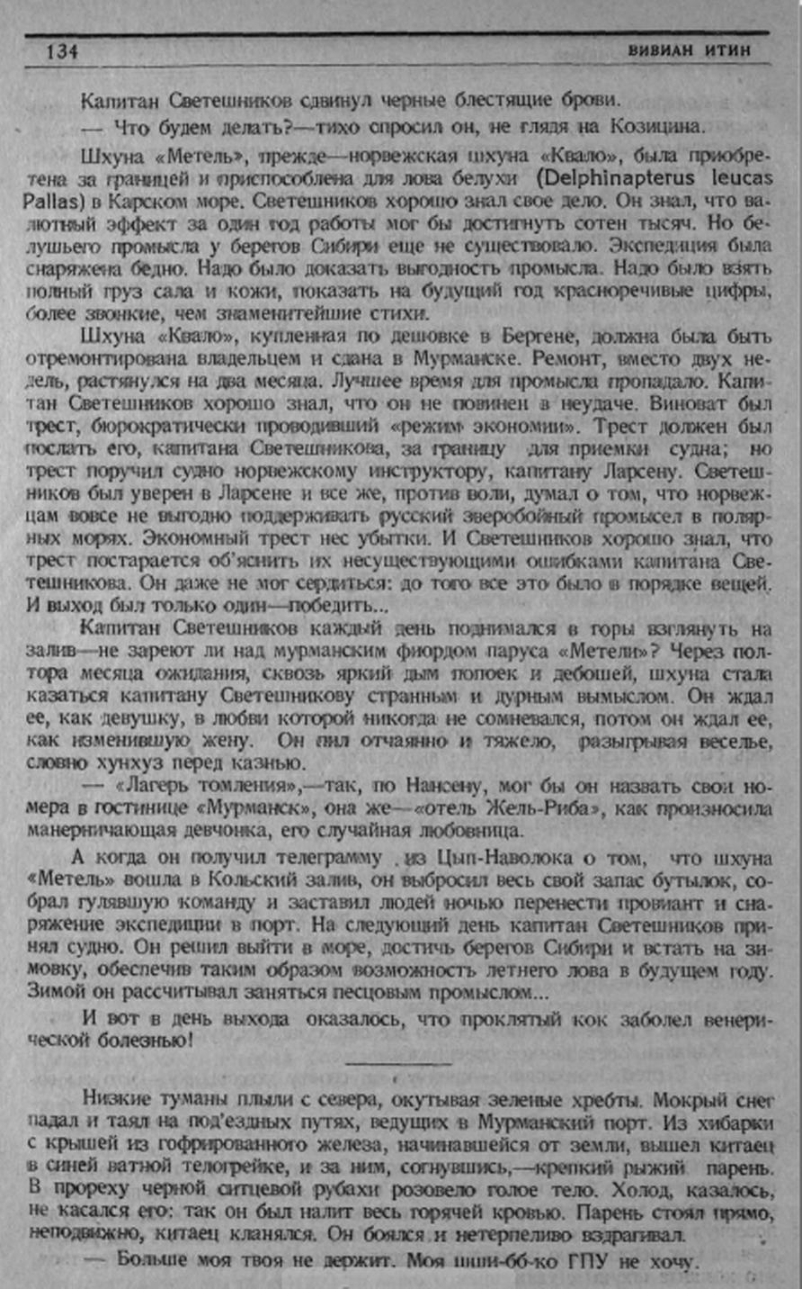 Здесь вот и начинается мой рассказ. Предположим, что шхуна оказалась бы в лучшем состоянии. Ее выпустили в море. Рассказ можно начать со случая в роде того, что был у вас на «Севере» в Енисейске. Мне говорил об этом, гораздо раньше тебя, помкапитана парохода «Станислав Коссиор». Ведь это — обыкновенная история. Вот наброски.