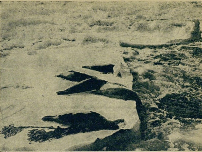 14 МАЯ. Утром кожа опять налилась очень густая, большая. Начали стрелять. Четыреста сорок зверей уложили. Остальная кожа вся слилась — зверь ушел в воду. Команда пошла собирать зверя».