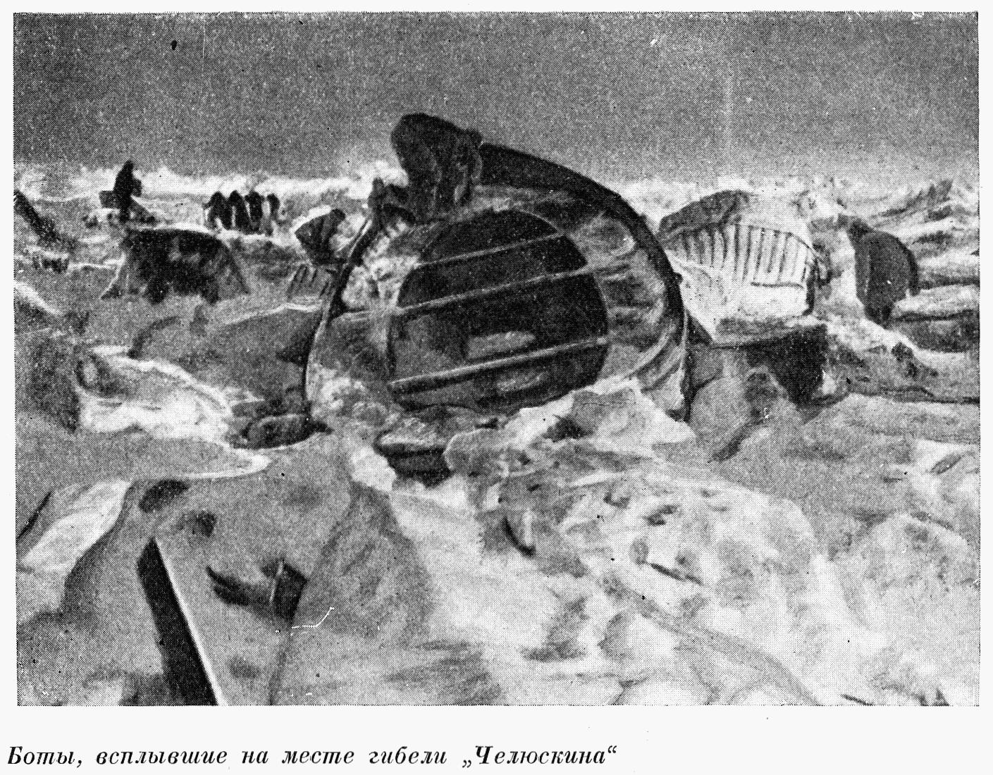Днем энергично "осваивали" льдину. В черной полынье, оставшейся на месте гибели "Челюскина", всплыло множество всякого добра: шлюпка, тес с палубы (тали и найтовы, которыми он был прикреплен, мы предусмотрительно обрубили перед погружением судна), несколько бочек горючего. Одним словом — все, о чем только может мечтать потерпевший кораблекрушение... Все это общими усилиями извлекалось на лед. Последний раз спасибо "Челюскину"!