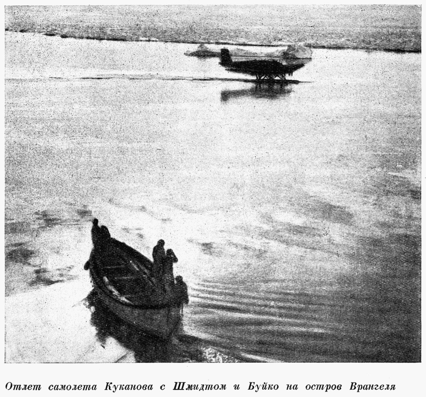 Надеваю валенки, полушубок, хватаю шапку, карту острова Врангеля, и я готов. Садимся в моторку и плывем к самолету. Тут произошел маленький инцидент: к трем прилетевшим на самолете прибавилось еще трое, и, когда пошли на взлет, не смогли оторваться. Моторы отработали свой срок и не давали должного количества оборотов.