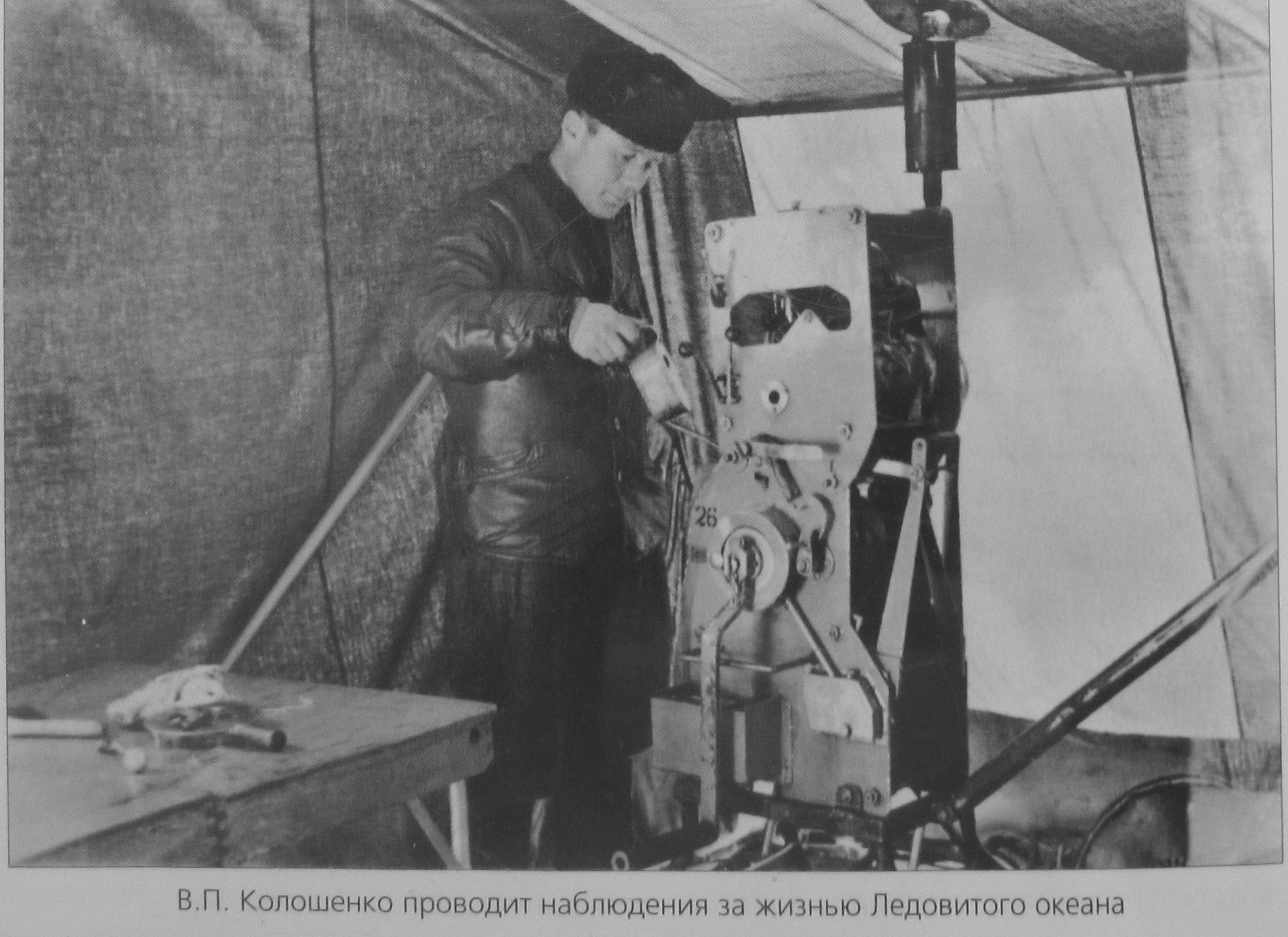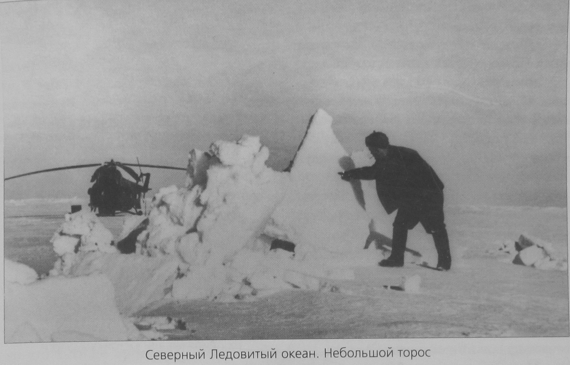...Наша работа на станции не ограничивалась только полетами. Экипаж вертолета участвовал и в проведении научных исследований по программе, разработанной Ленинградским институтом Арктики и Антарктики. Для изучения подледной жизни океана мы ломами, пешнями и с помощью лопат пробили в трехметровой толще льда прорубь размером 2 на 2 метра и установили над ней брезентовую палатку. Из дюралевых труб соорудили треногу, к вершине которой прикрепили моторчик от мотоцикла Ка-125 и лебедку с длинным тонким стальным тросом. К концу троса крепилось специальное приспособление, позволяющее брать пробы грунта со дна океана. На трос навешивались специальные датчики, которые помогали узнавать температуру воды и давление на разных глубинах.