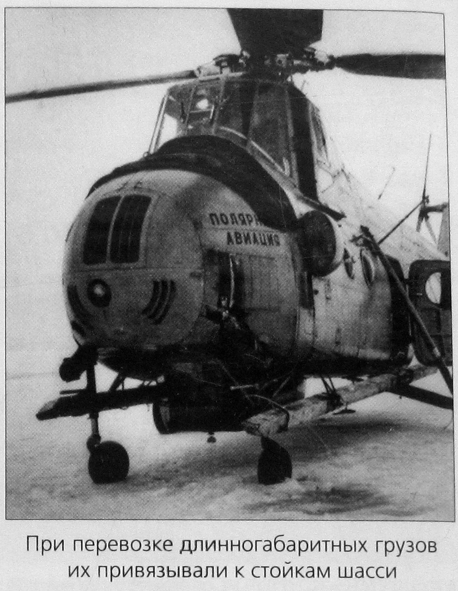 ...Мы взлетаем. Начинается грандиозный воздушный поход к Северному полюсу. Низкие облака вынуждают нас лететь над самой землей. Я вижу, как вертолет Афонина под действием порывистого встречного ветра кренится, летит, как по кочкам. Работая рычагами управления, пытюсь выдерживать на этой «ухабистой дороге» дистанцию между нашими вертолетами и высоту полета. Второго пилота в моем экипаже нет: все еще непросто уговорить летчиков пересесть с освоенных и ставших родными самолетов на непонятную и опасную бескрылую технику - вертолет. Рядом со мной, на месте второго пилота - штурман Саша Громчевский. Он уже записал время взлета, посматривает на колеблющиеся стрелки приборов, показывающие скорость и высоту, на компас, сличает местность, над которой мы летим, с картой. Бортмеханик Константин Андреевич Лещенко внимательно наблюдает за приборами, контролирующими работу двигателя. Внизу, в передней части грузовой кабины, работает бортрадист Говорухин - он согласился пролететь с нами только часть маршрута.